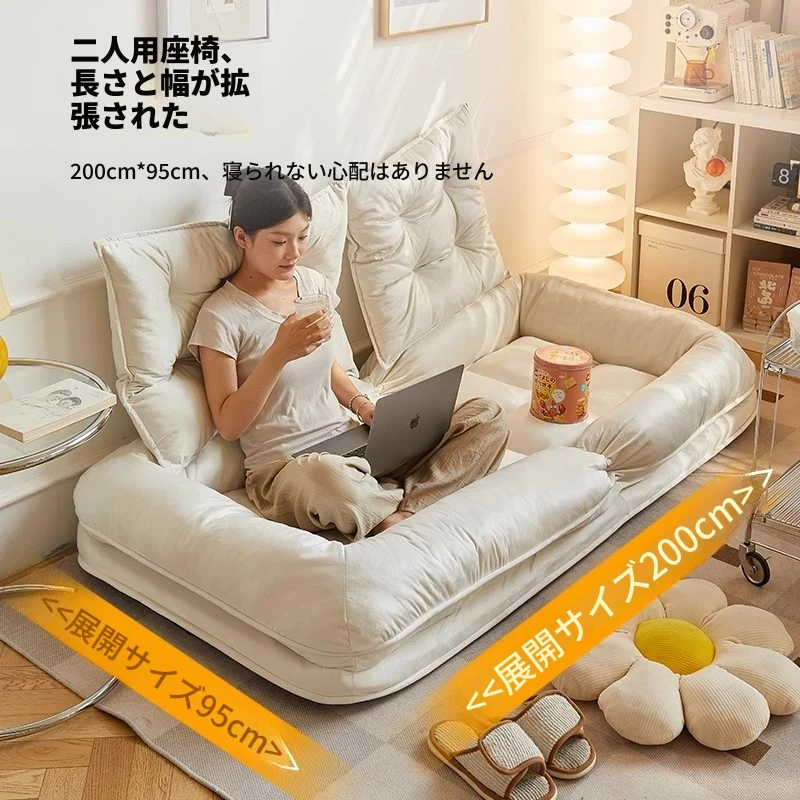 おしゃれで便利!小型住宅にぴったりな2人用リクライニングソファベッド。リビング、寝室、バルコニーでも活躍する折りたたみ式の多機能ソファチェア。あなたの空間を素敵に演出します!