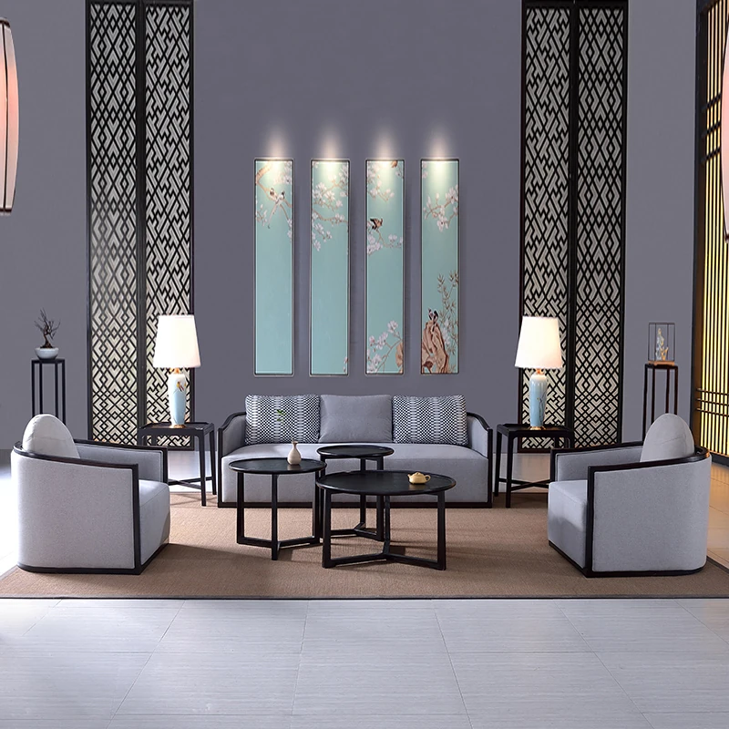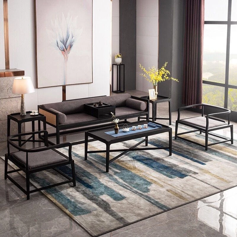 新中式禅風ソファセット|実木製|小型リビングやホテル・民宿・オフィスに最適|エレガントで快適な空間を演出する家具