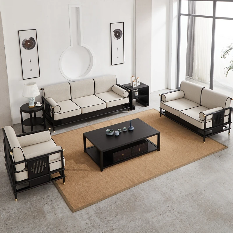 新中式禅風ソファセット|天然アッシュ材使用の美しいデザイン|小型住宅やオフィスに最適|心安らぐリビング空間を演出する高品質家具