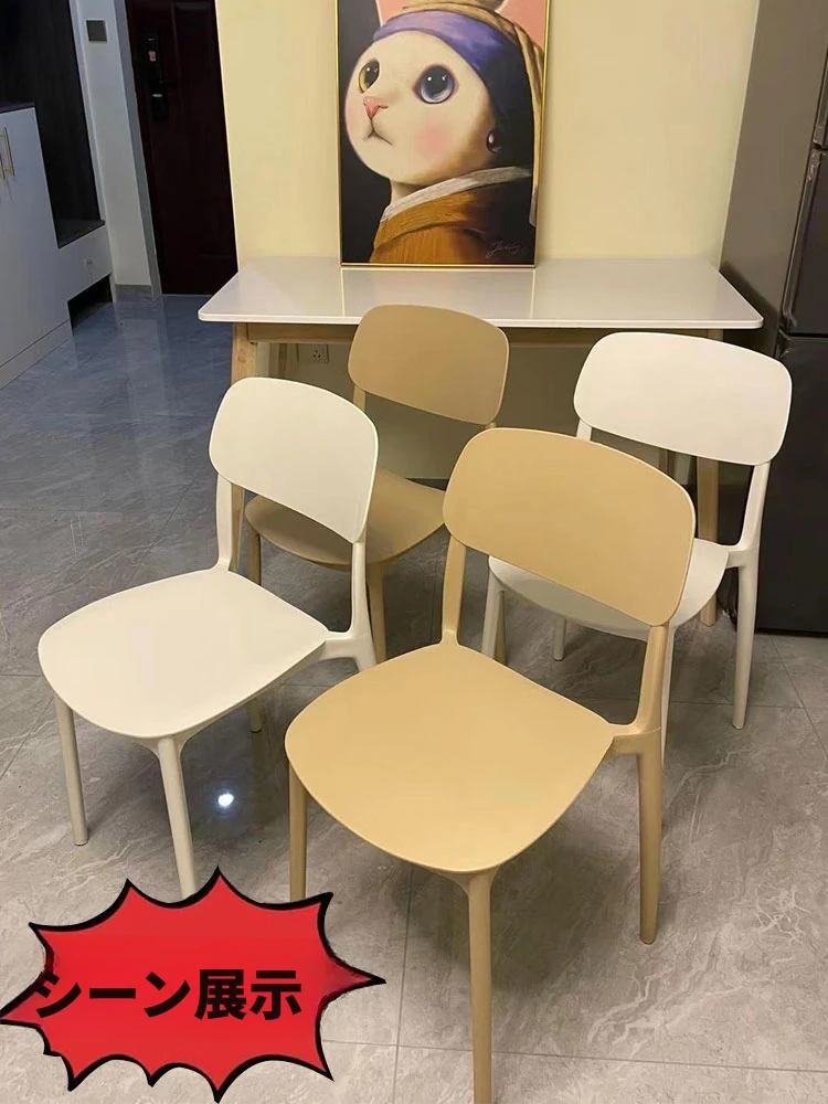厚手で丈夫な積み重ね可能なプラスチック製ダイニングチェア - 北欧スタイルのレストランや家庭に最適な背もたれ付きチェア。おしゃれで機能的なデザインで、快適な食事の時間を提供します!