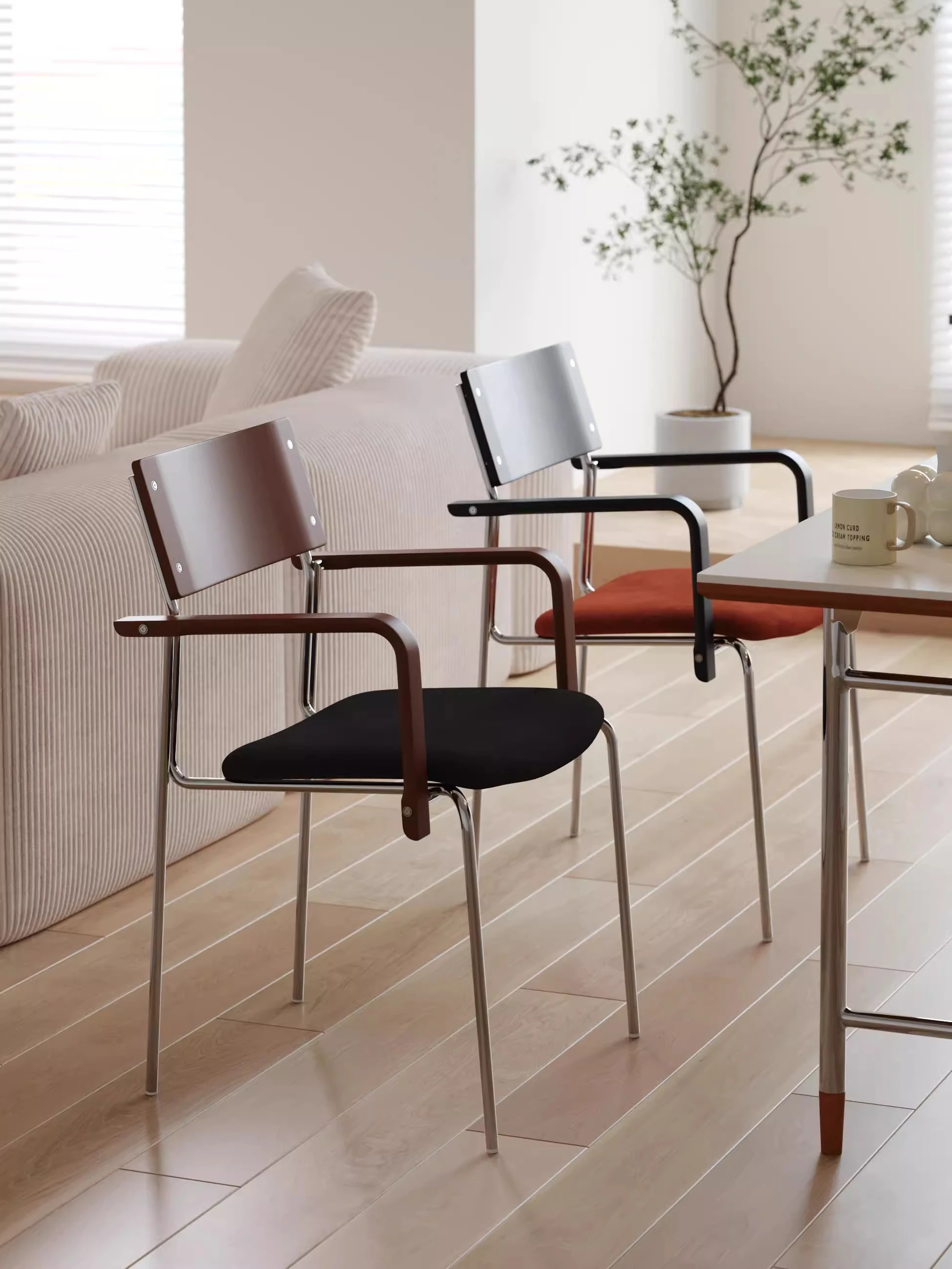 中古ステンレススチールバウハウスダイニングチェア|家庭用軽奢スタイル|積み重ね可能|木製|レストランやリラックスタイムに最適なアームチェア|一人用メイクアップチェアとしてもおすすめ!