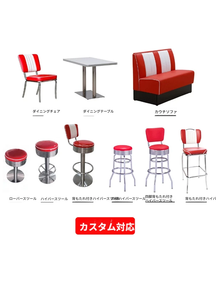 アメリカンレトロダイナー用チェア|1950年代スタイルの赤いファストフードチェア|ハンバーガーショップやバーにぴったりのヴィンテージデザイン!おしゃれで懐かしい雰囲気を演出します。