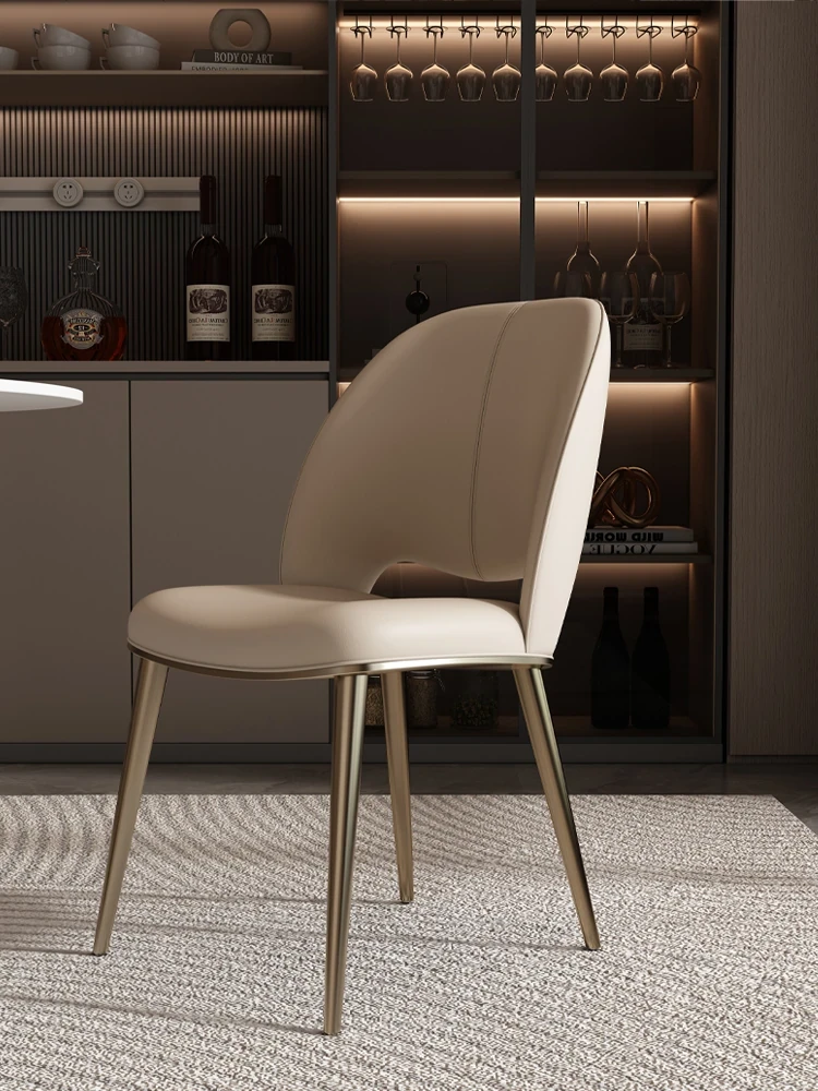 洗練されたデザインの軽奢レストランチェア|現代的でシンプルな家用・ホテル用|デザイナーによるイタリアンミニマリズム|真皮素材で高級感溢れるカフェチェア!