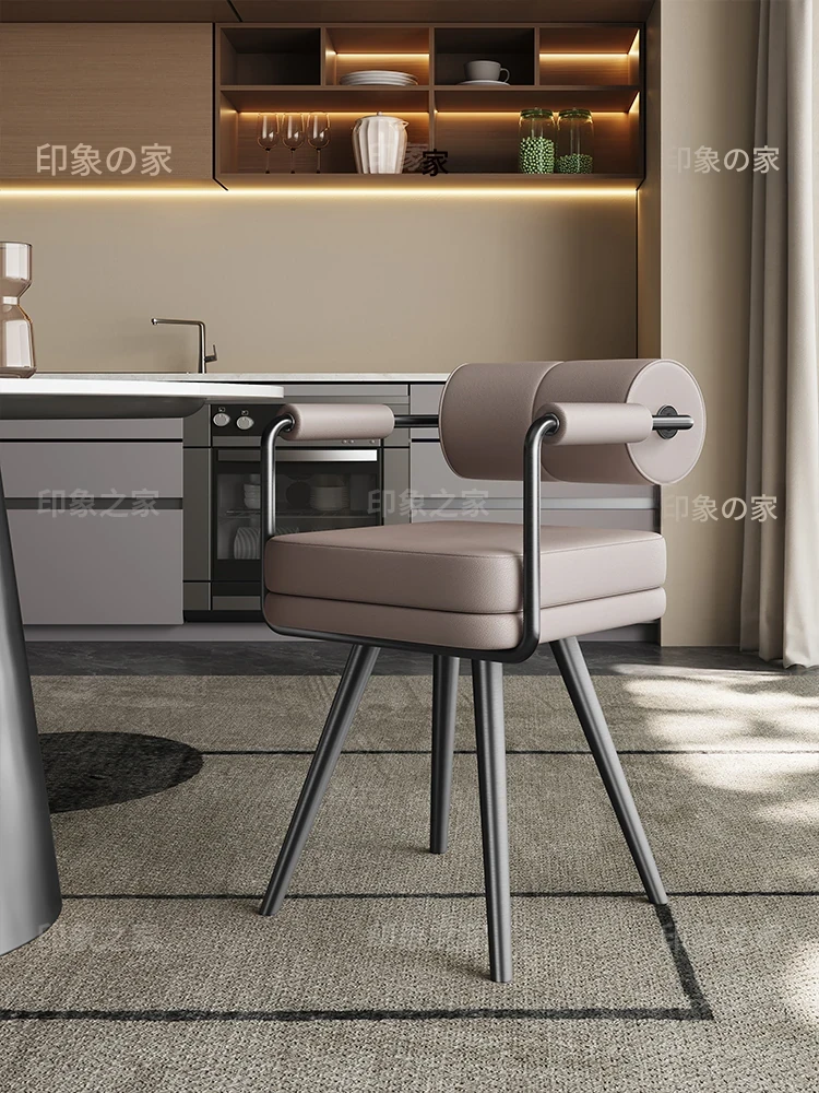 高級感溢れるレザー製のモダンミニマリストダイニングチェア - ホテルやレストランに最適な、シンプルで洗練されたデザインが魅力のヴィラアイランドテーブル用チェア。家庭でも使えるスタイリッシュな一品!