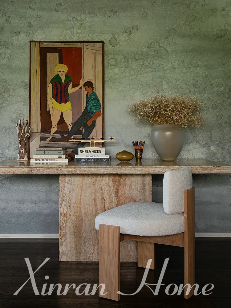 Modern Minimalist Solid Wood Dining Chair - Vintage Style Armchair for Home, Perfect for Desks and Bar Areas, Cozy Lambswool Upholstered Single Chair