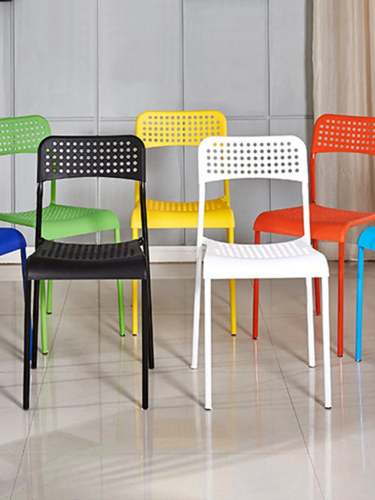 Minimalist Dining Chair for Home and Restaurant - Versatile Plastic Stool with Backrest for Leisure, Office, and Student Training - Space-Saving Design