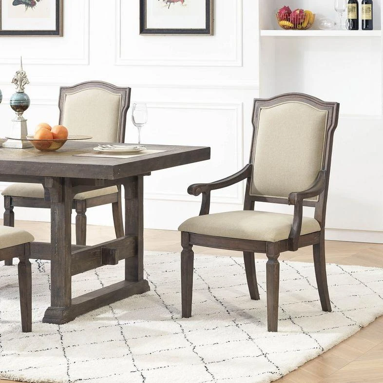 Vintage American Solid Wood Fabric Dining Chair - Retro Style Armchair for Hotels, Villas, and Offices