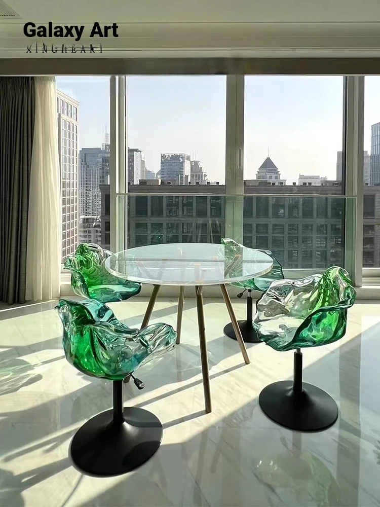 Elegant Edra Swivel Petal Chair - Designer Transparent Resin High-End Bar Stool for Home and Commercial Use - Adjustable Height Dining Chair