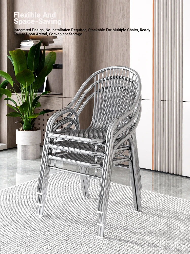 Modern Stainless Steel Dining Chair with Armrests – Stylish and Durable Outdoor Balcony Seat, Perfect for Home Use, Simple and Comfortable Lounge Chair for One