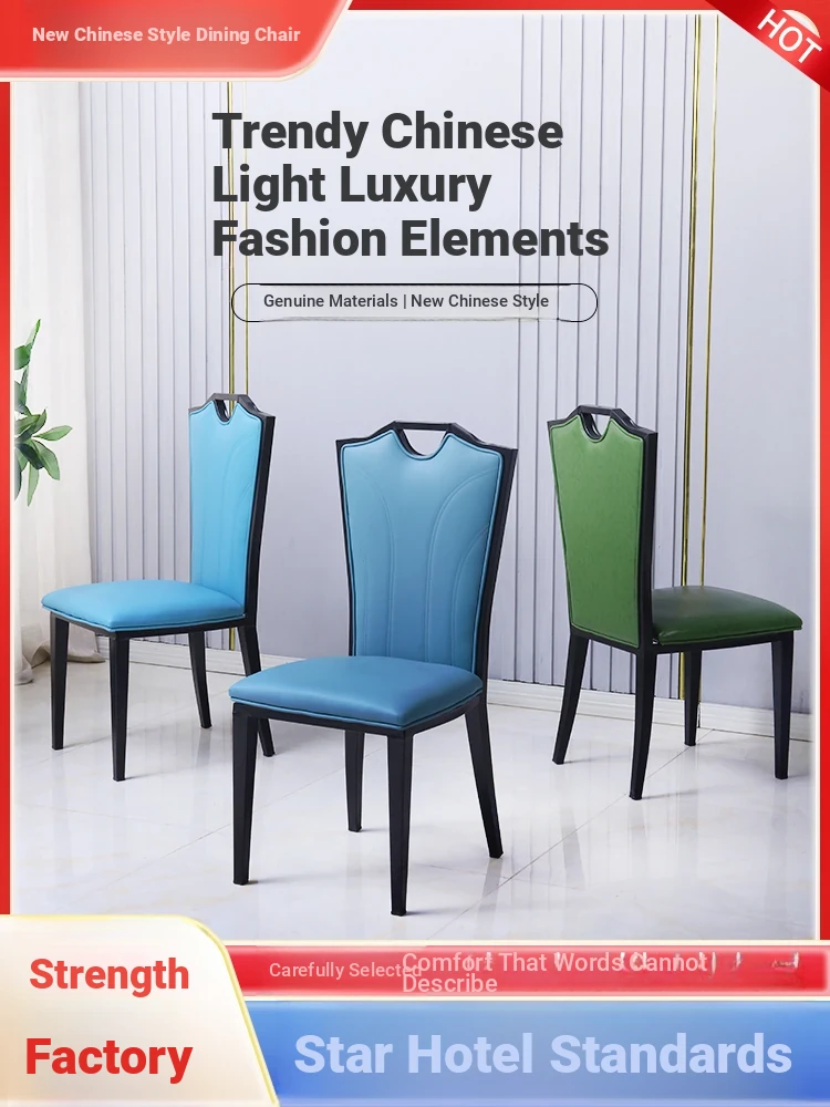 Elegant New Chinese Style Dining Chair - Ideal for Hotels, Banquets, and Restaurants. Perfect for Private Rooms and Dining Areas. Stylish Lightweight Iron Frame, Comfortable Backrest, Perfect for Hot Pot Restaurants.