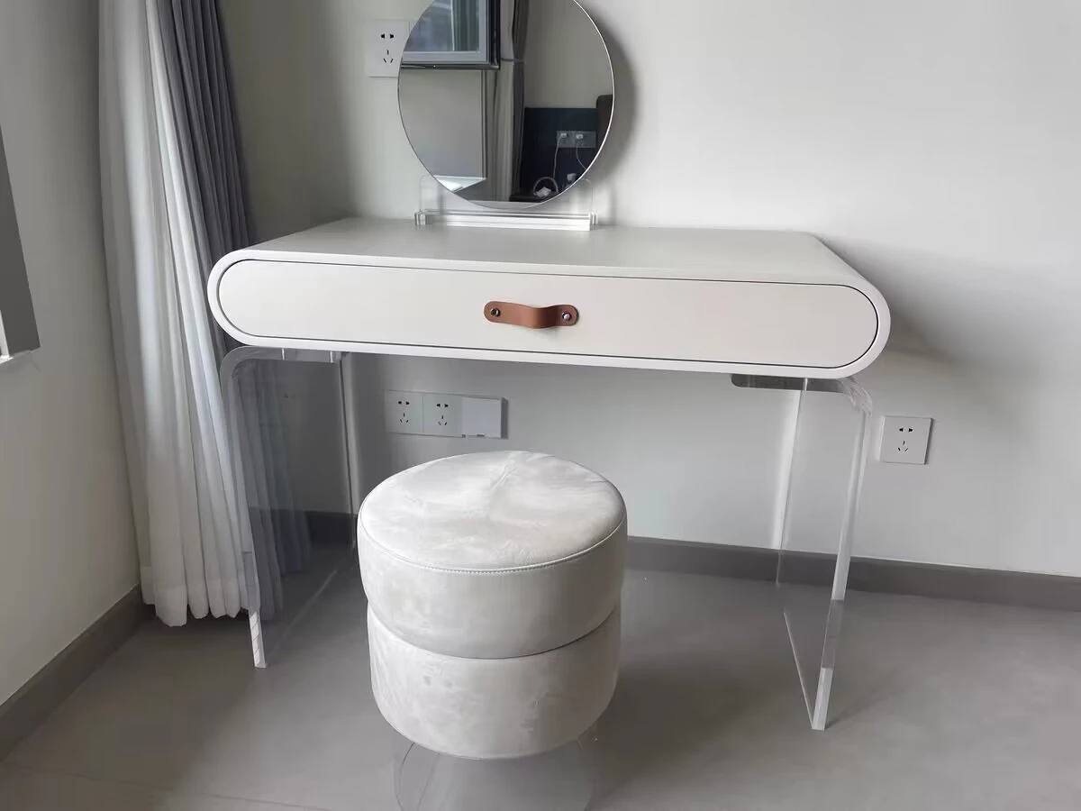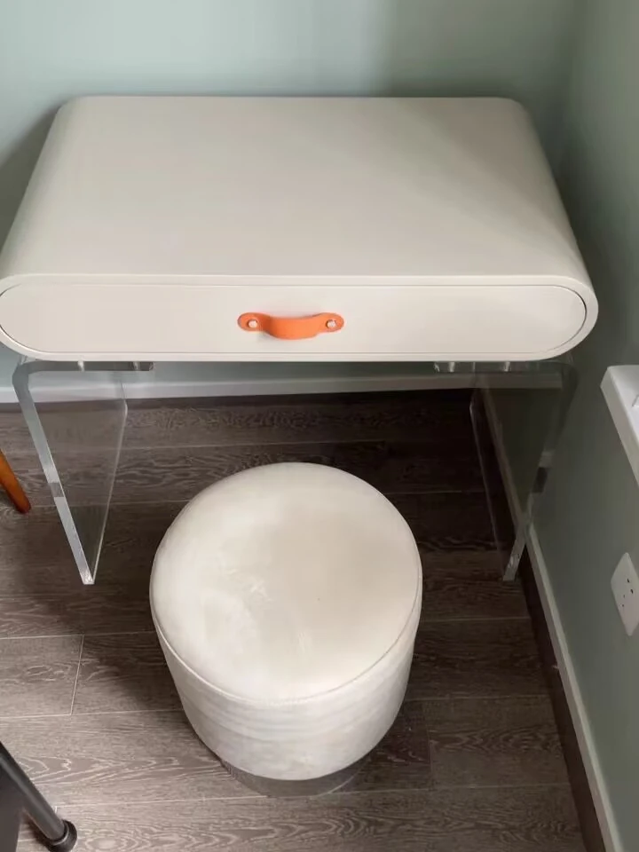 Acrylic Chic Vanity Stool for Girls - Modern Minimalist Makeup Chair for Bedroom, Trendy and Stylish Makeup Dressing Table Stool