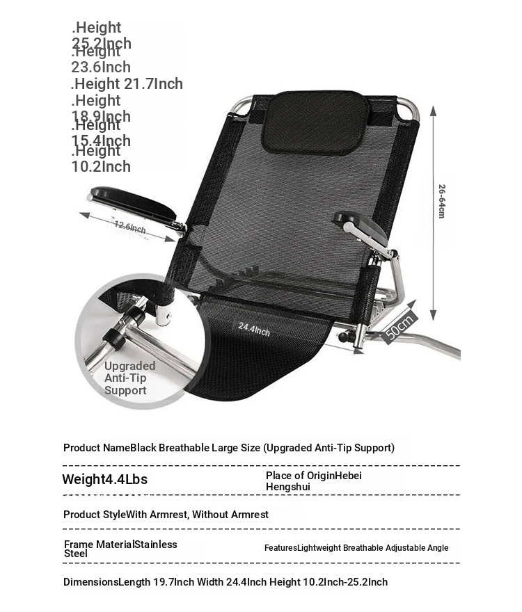 Black breathable stainless steel handrail [upgrade anti-rollover bracket] (large)