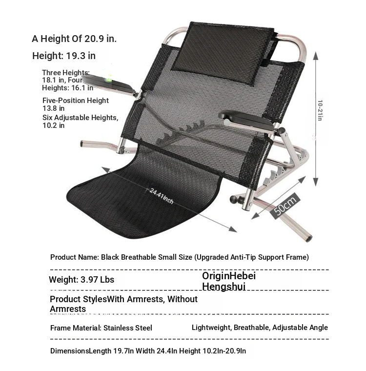 Black breathable stainless steel handrail [upgrade anti-rollover bracket] (small size)