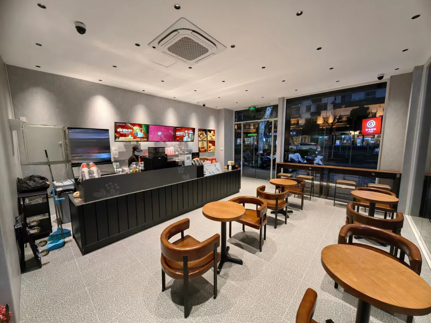 One table and two chairs.