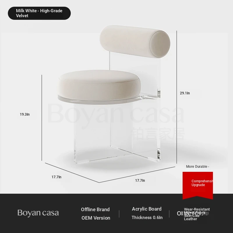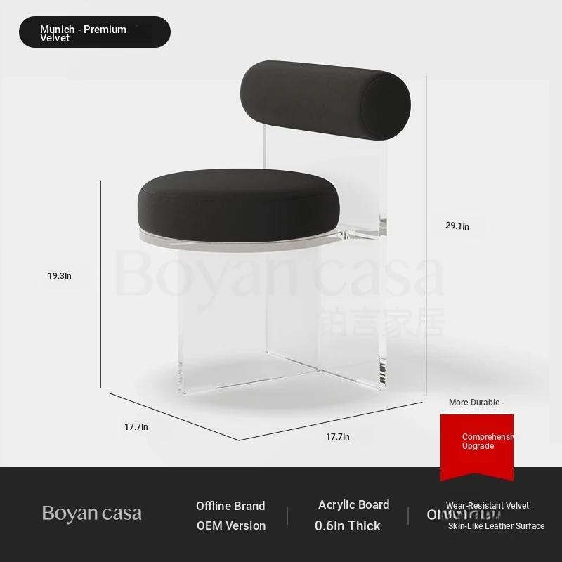 BOYAN Italian Minimalist High-End Acrylic Stool - Floating Dining Chair for Island Tables, Designer Quality and Transparent Elegance