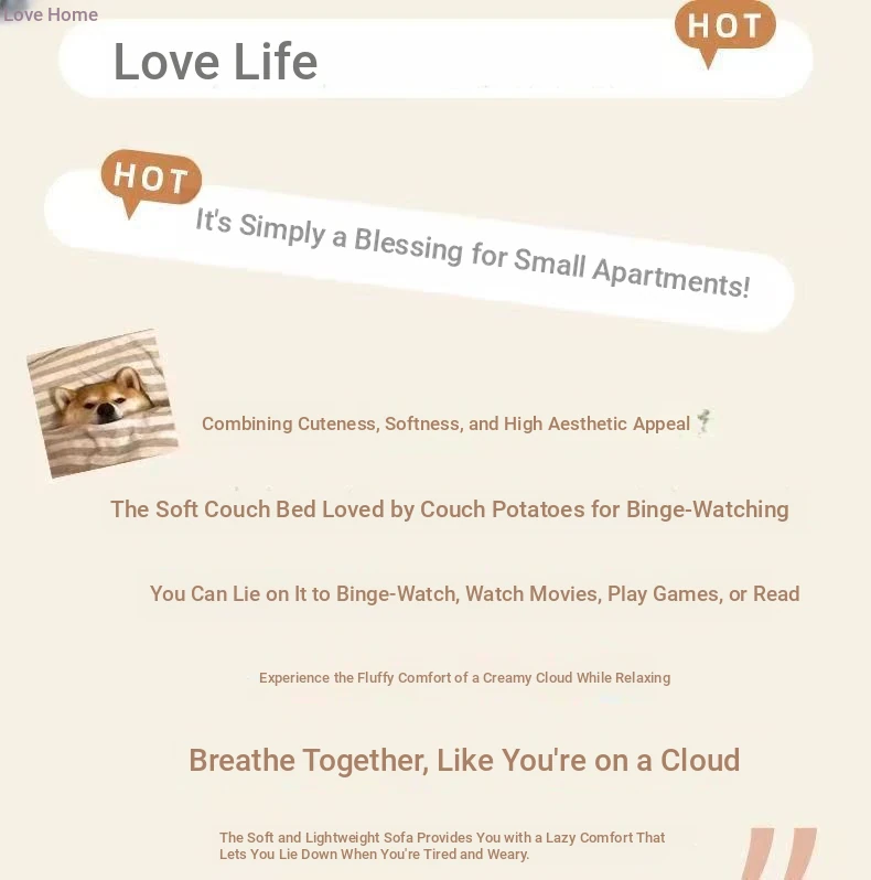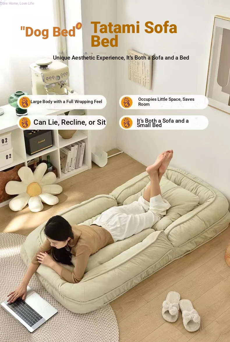 Cozy Dog Bed Sofa for Humans - Compact Lazy Couch for Bedroom, Tatami Style, Ideal for Singles and Couples, Perfect for Home and Balcony, Space-Saving Folding Sofa Bed for Relaxation