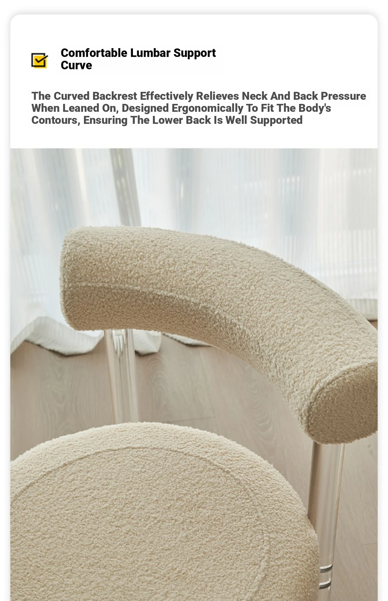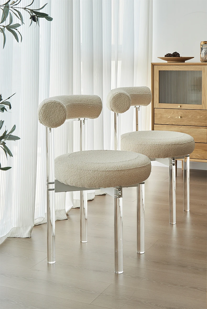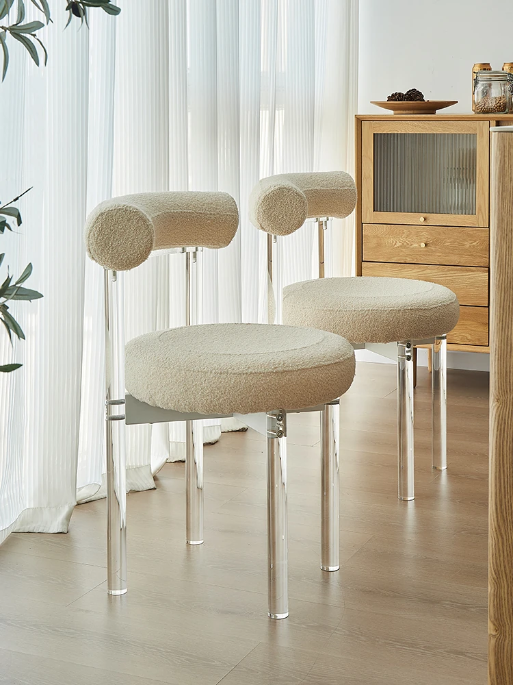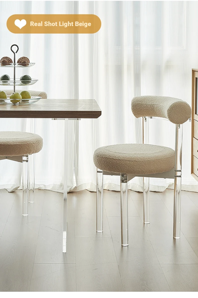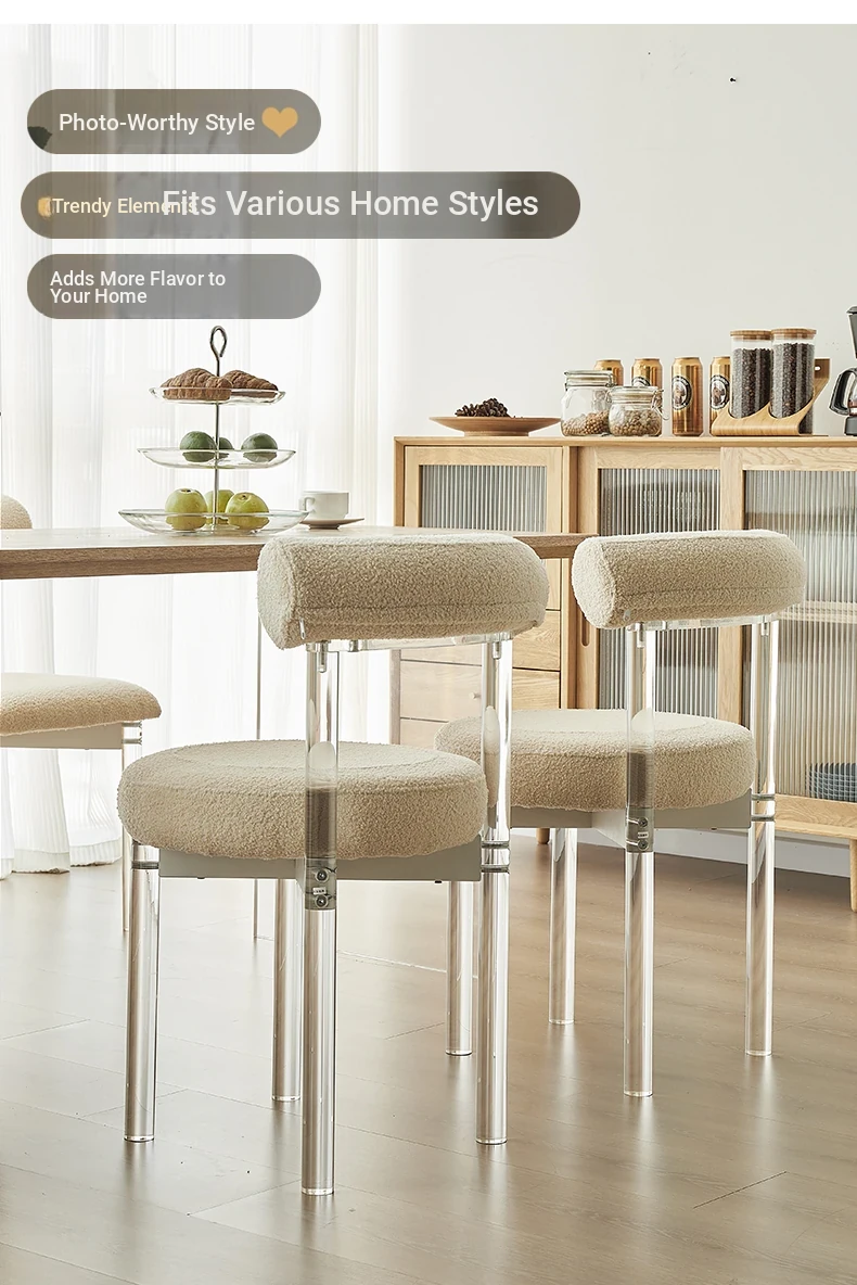 Creamy Acrylic Dining Chair - Transparent Makeup Chair for Bedroom, Stylish Home Dining and Vanity Stool with Backrest, Perfect for Modern Interiors.