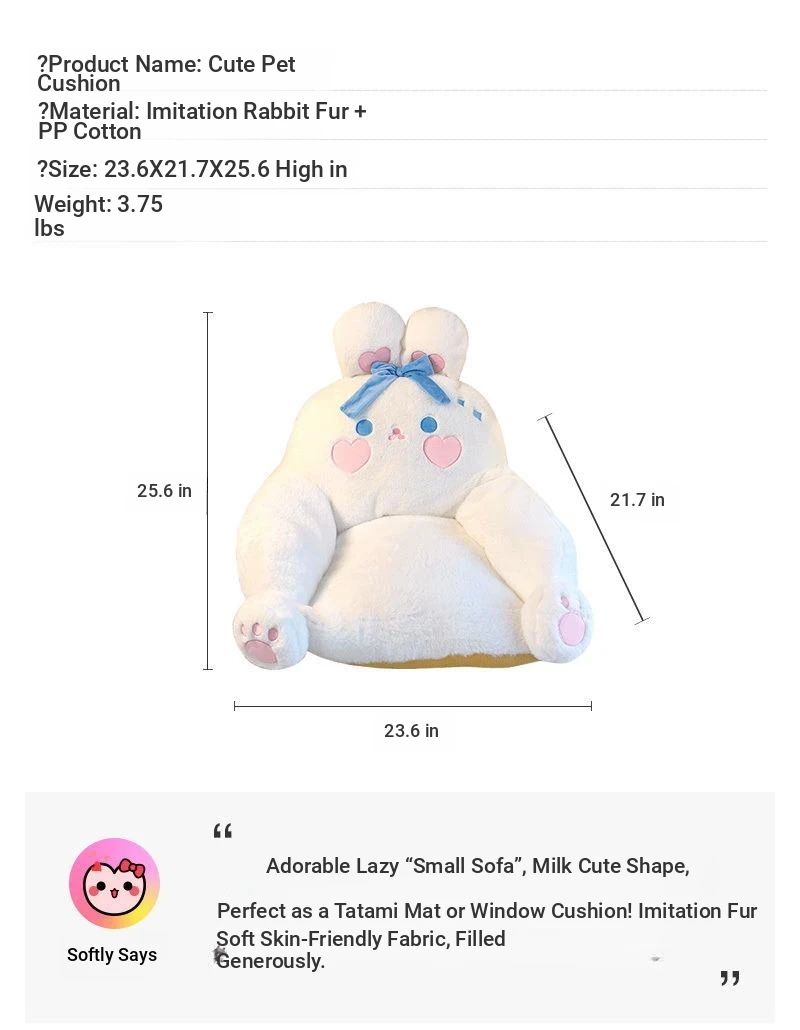Cute Rabbit Lazy Sofa Chair for Girls - Perfect for Bedrooms, Tatami, and Bay Windows. Ideal Small Cushion for Reading with Cartoon Backrest for Kids.