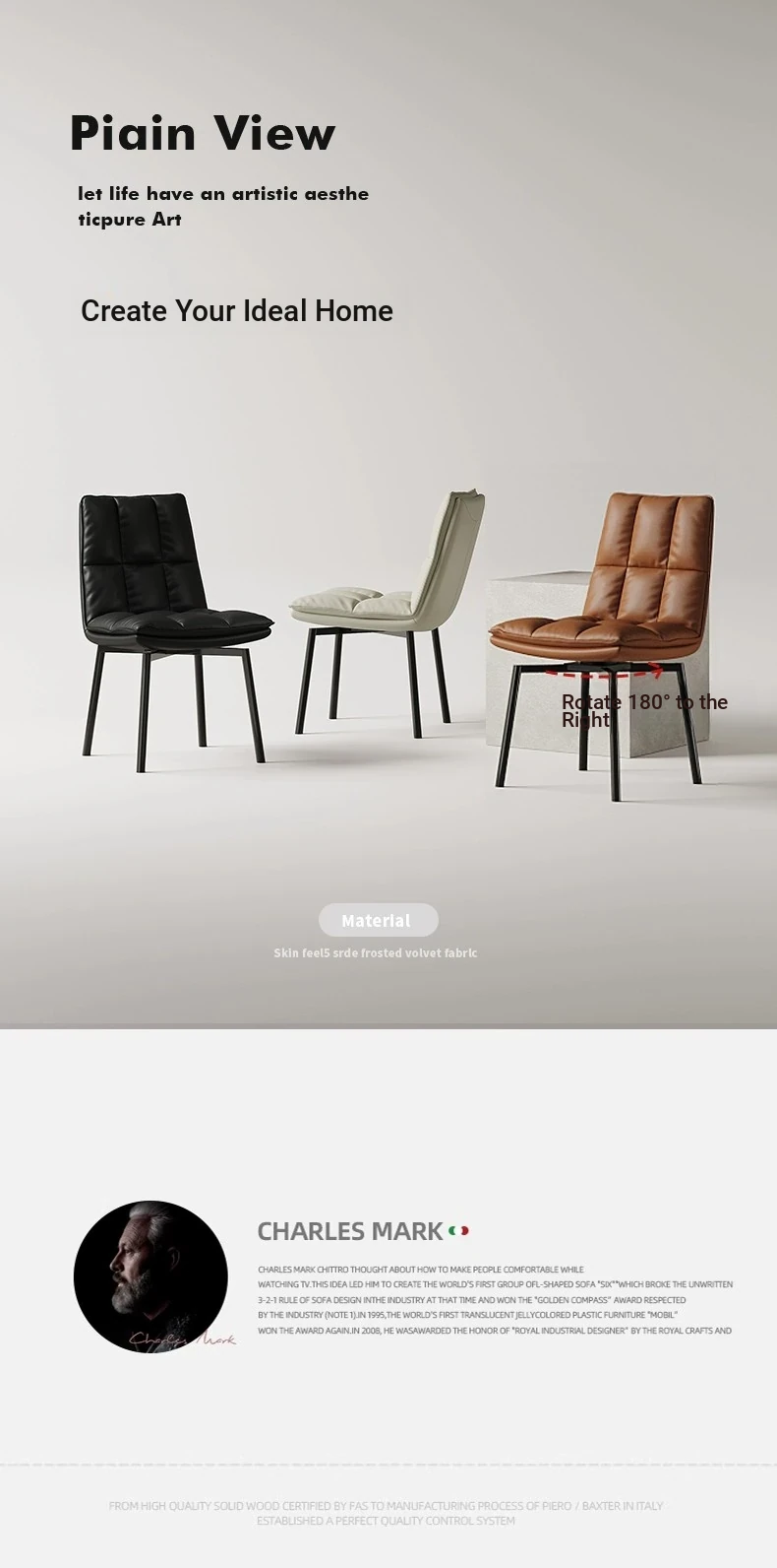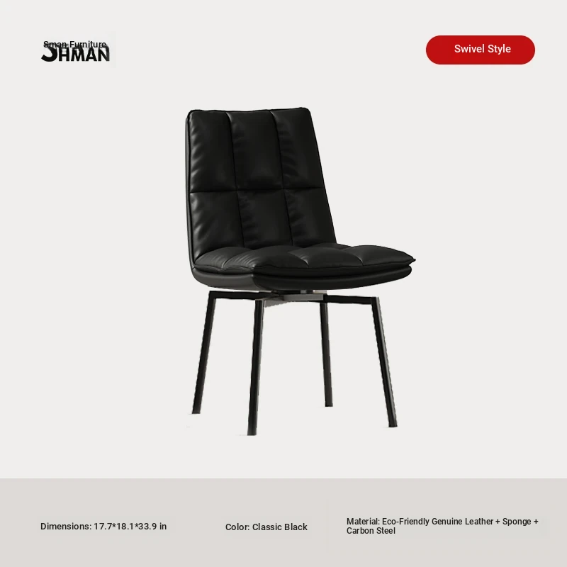 Dacos Italian Minimalist Rotating Dining Table Set - Luxurious Genuine Leather Dining Chairs with Backrest, Perfect for Home and Dining Room Elegance