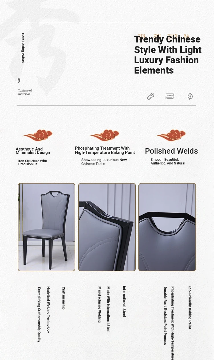 Elegant New Chinese Style Dining Chair - Ideal for Hotels, Banquets, and Restaurants. Perfect for Private Rooms and Dining Areas. Stylish Lightweight Iron Frame, Comfortable Backrest, Perfect for Hot Pot Restaurants.