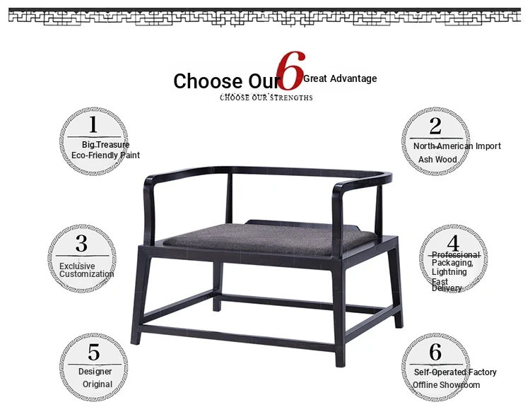 Elegant New Chinese Style Rohan Chair - Solid Wood Armchair with Backrest, Perfect for Relaxation and Reading, Ideal for Home or Office Décor