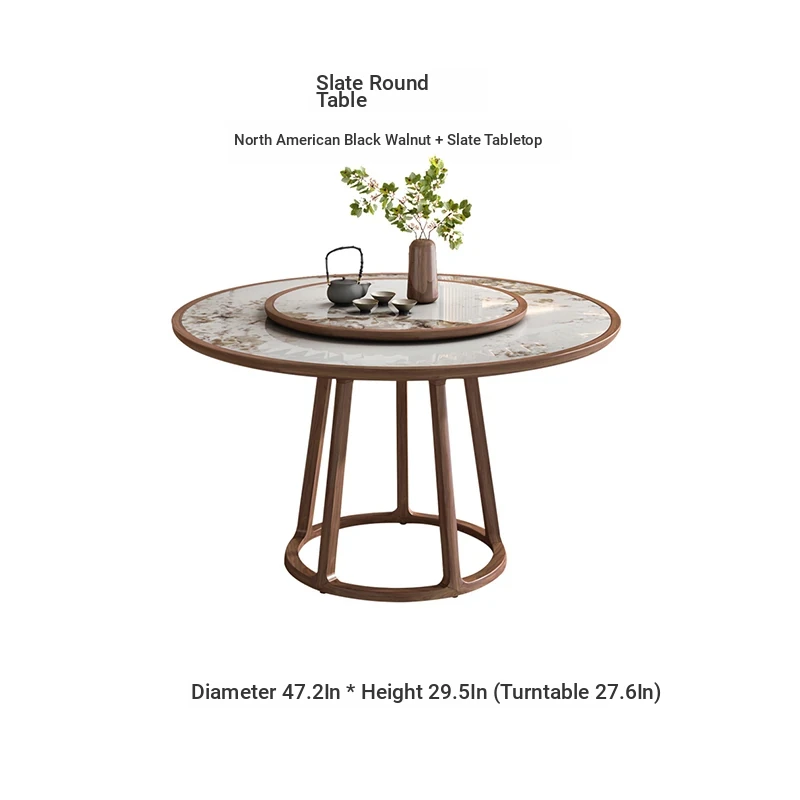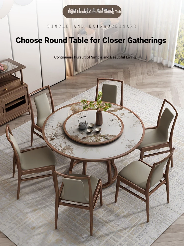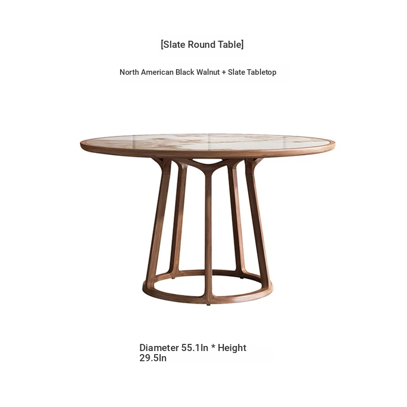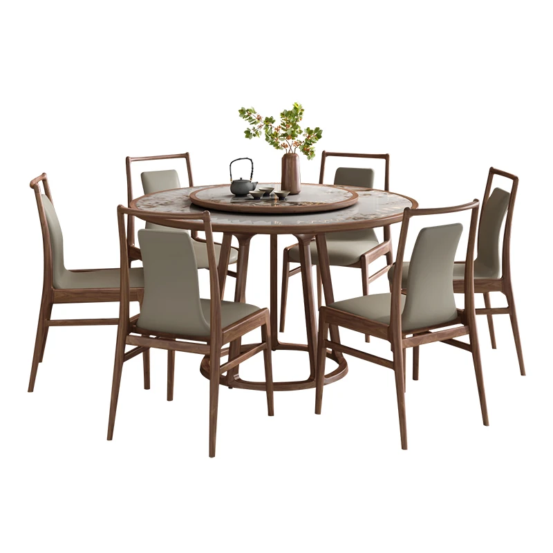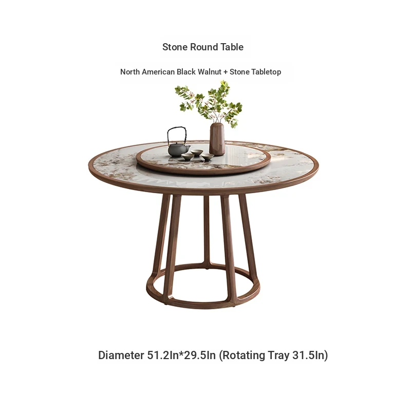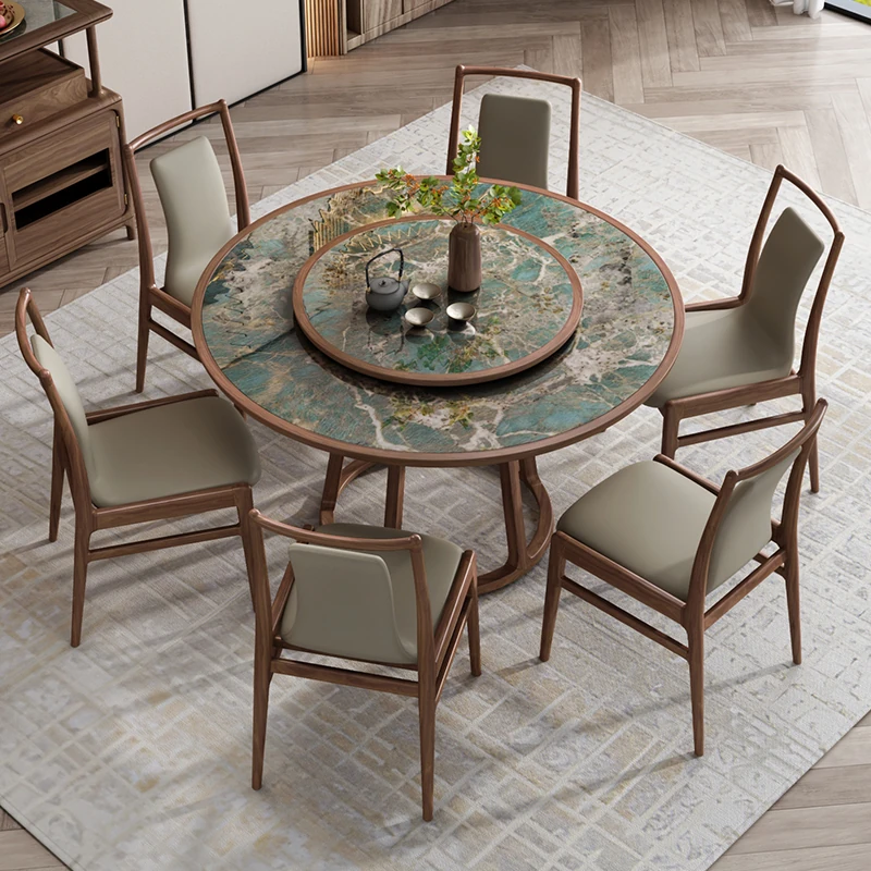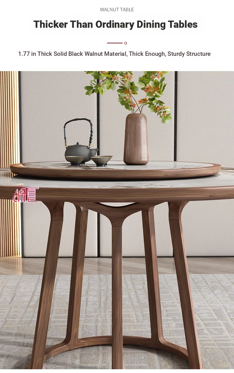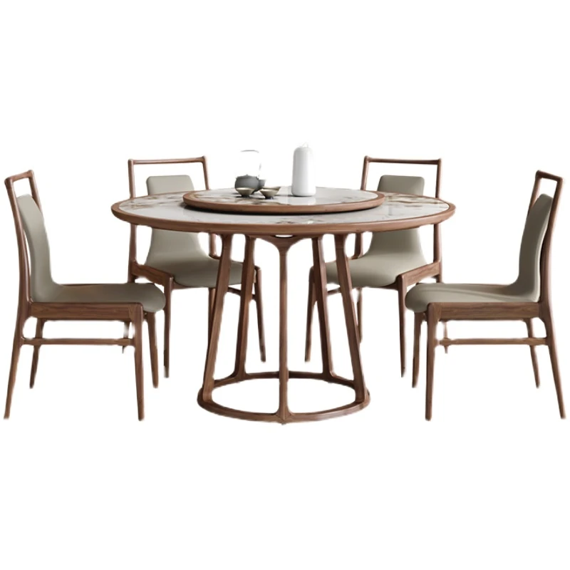 Elegant Round Dining Table Set in North American Black Walnut - Premium Solid Wood with Luxurious Stone Top - Perfect for Modern Chinese Style Interiors