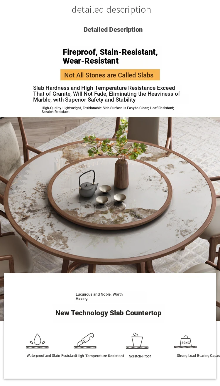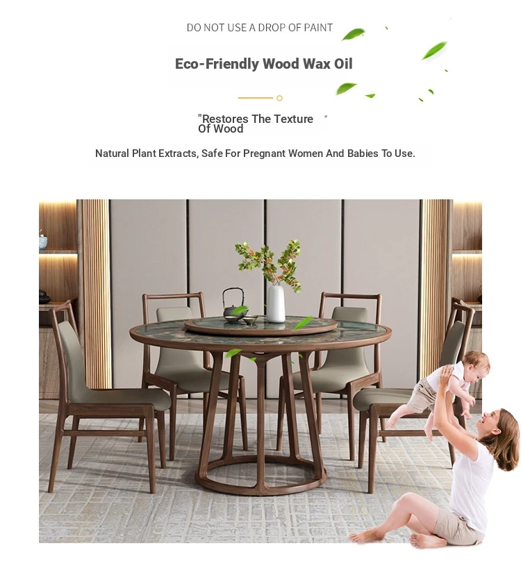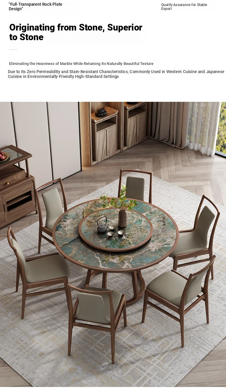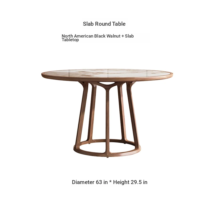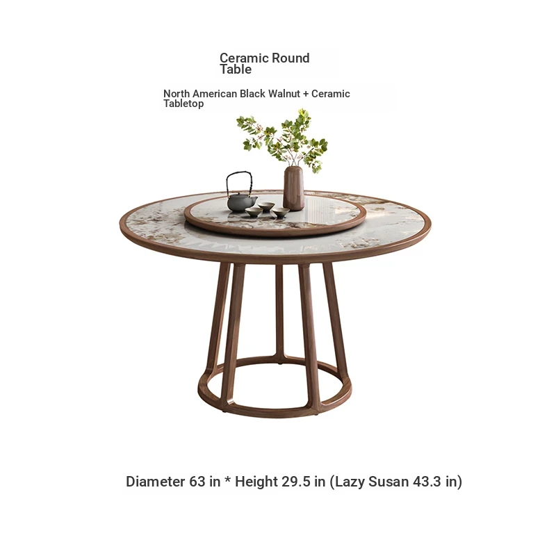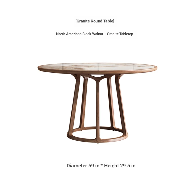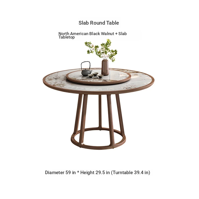 Elegant Round Dining Table Set in North American Black Walnut - Premium Solid Wood with Luxurious Stone Top - Perfect for Modern Chinese Style Interiors