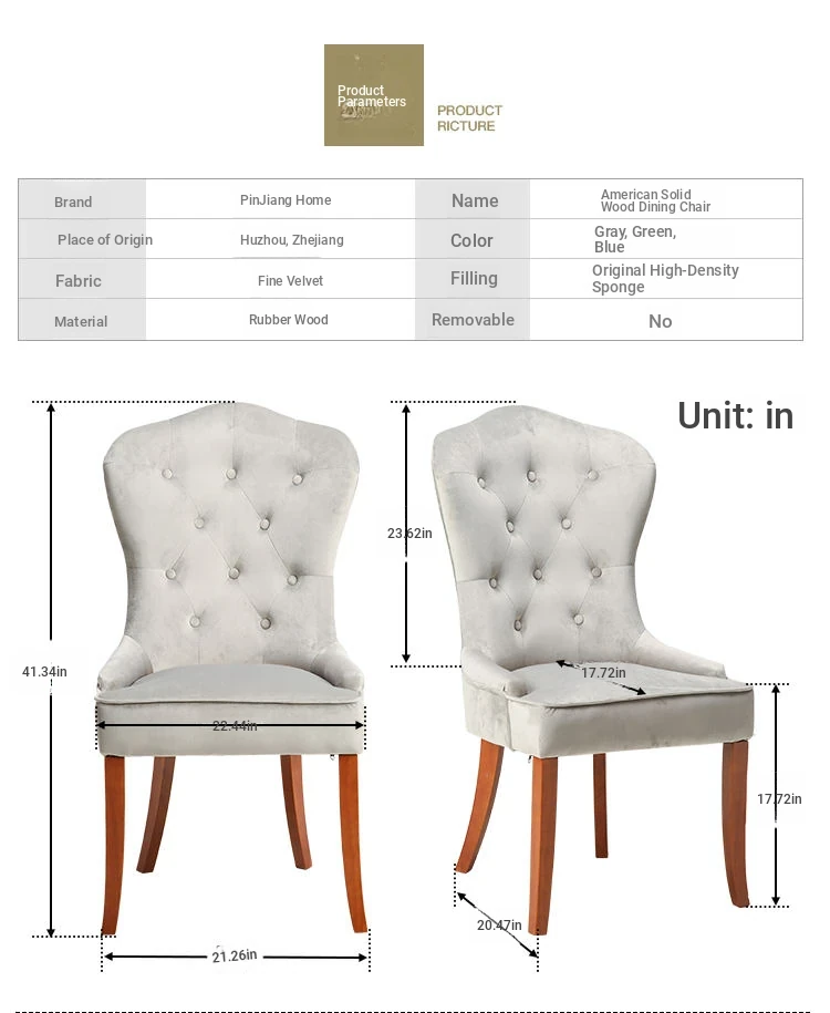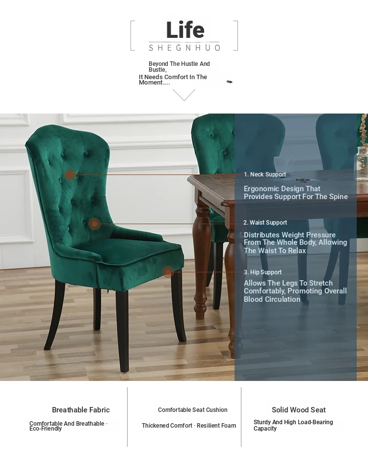 Elegant Velvet Upholstered Dining Chair - European Style Solid Wood Makeup Chair for Home and Hotel, Cozy American Light Luxury Design for Dining and Study