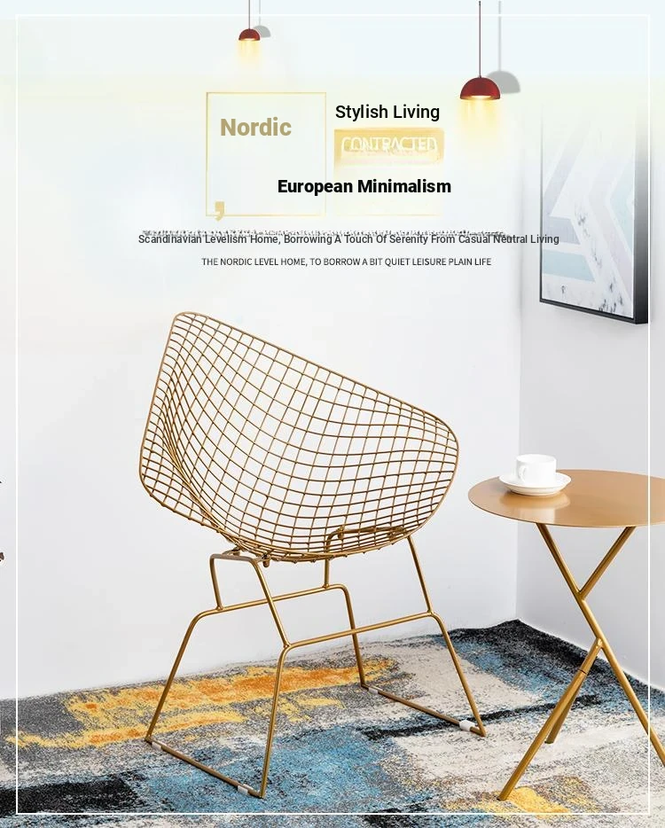 European Style Iron Leisure Sofa Chair - Outdoor Metal Designer Dining Chair with Minimalist Creative Backrest and Hollow Iron Mesh Design for Modern Spaces