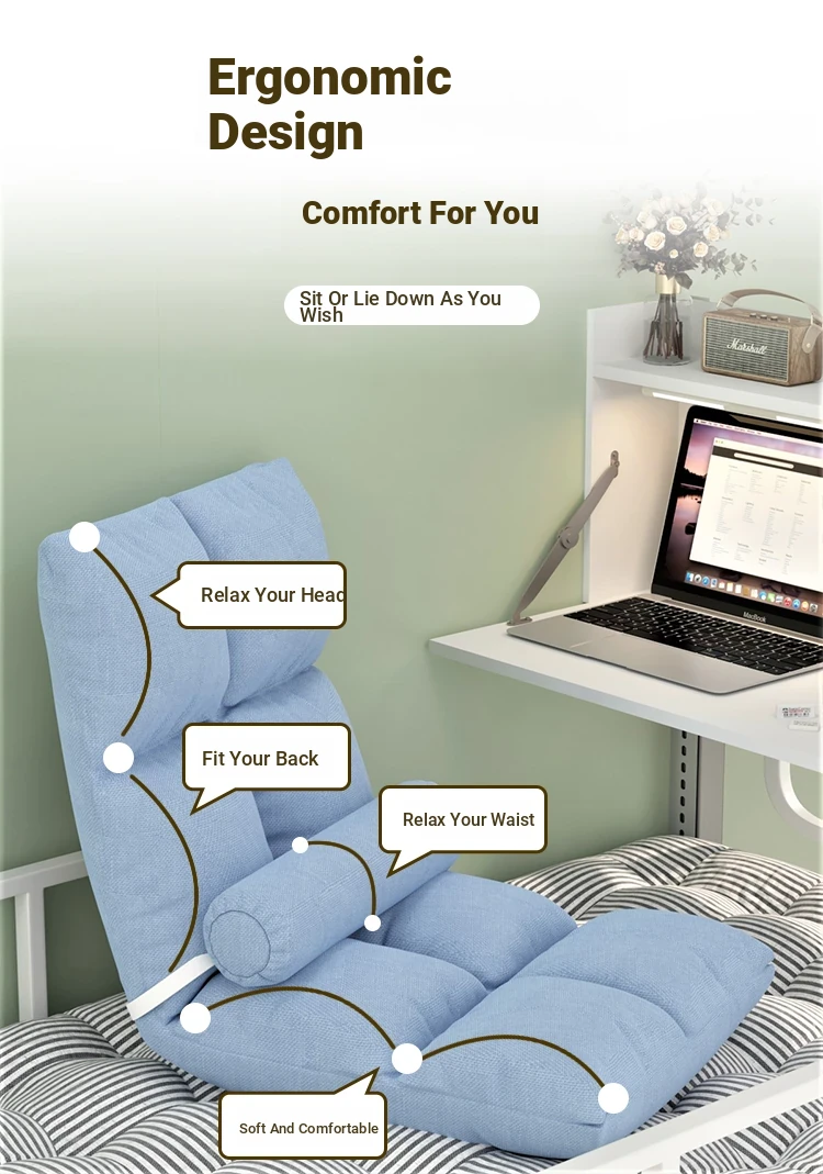 Foldable Adjustable Backrest Chair for Dorms - Multi-Functional Cushion Sofa for Lazy People, Perfect Lumbar Support for College Students