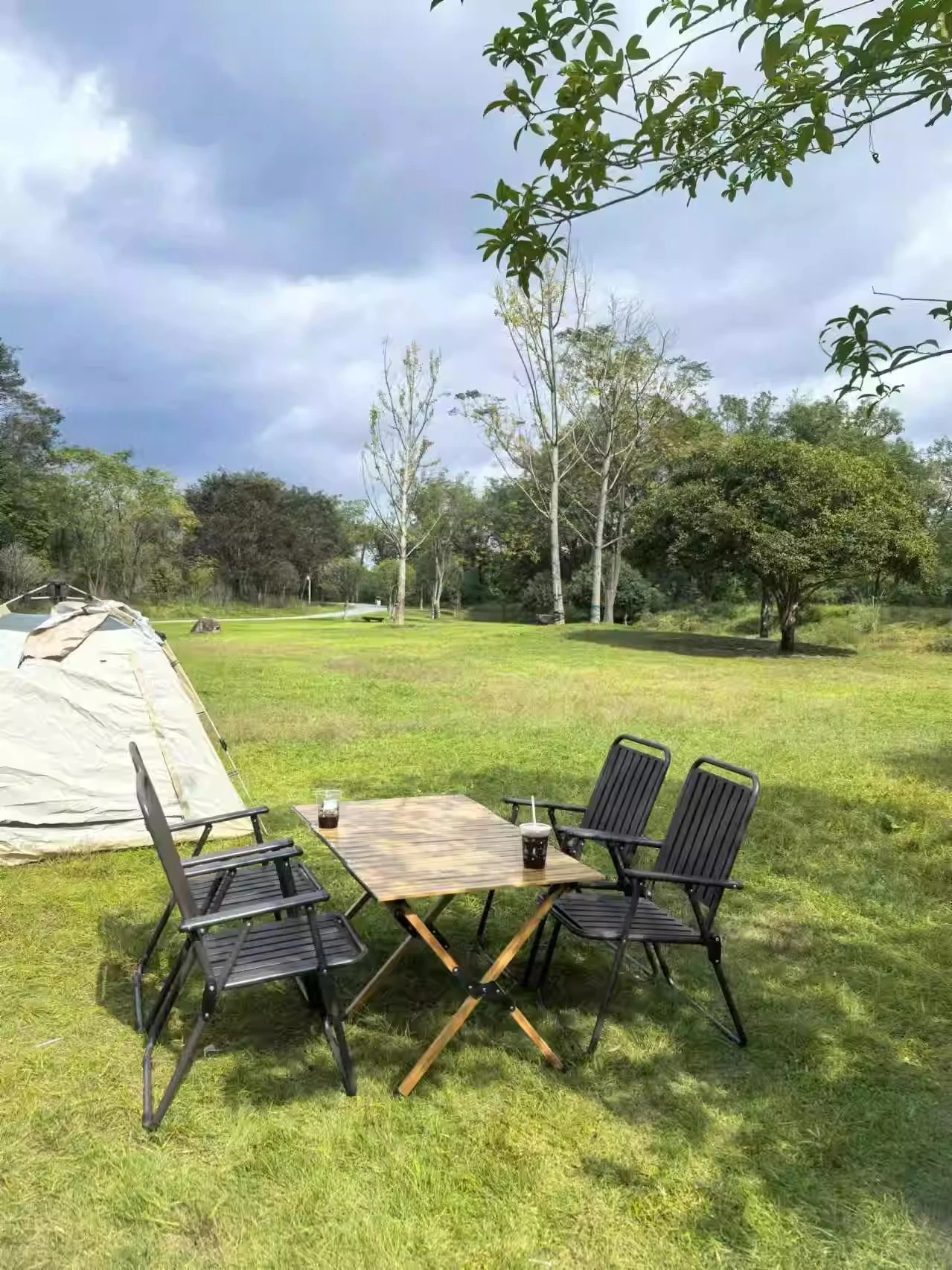 4 people camp Suit: reinforced thickened wood grain color