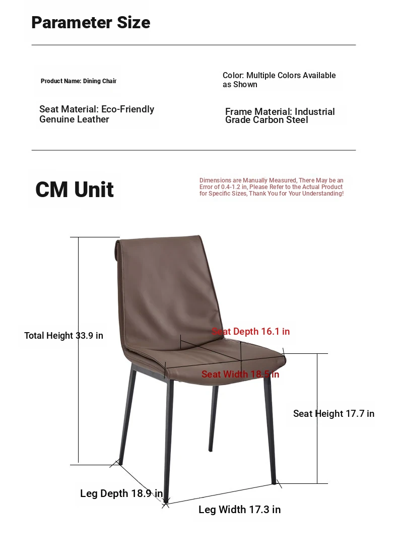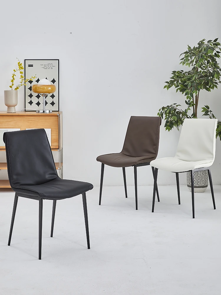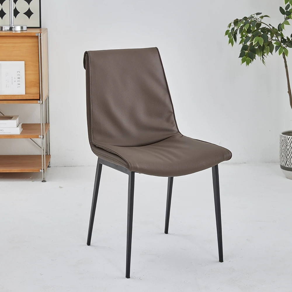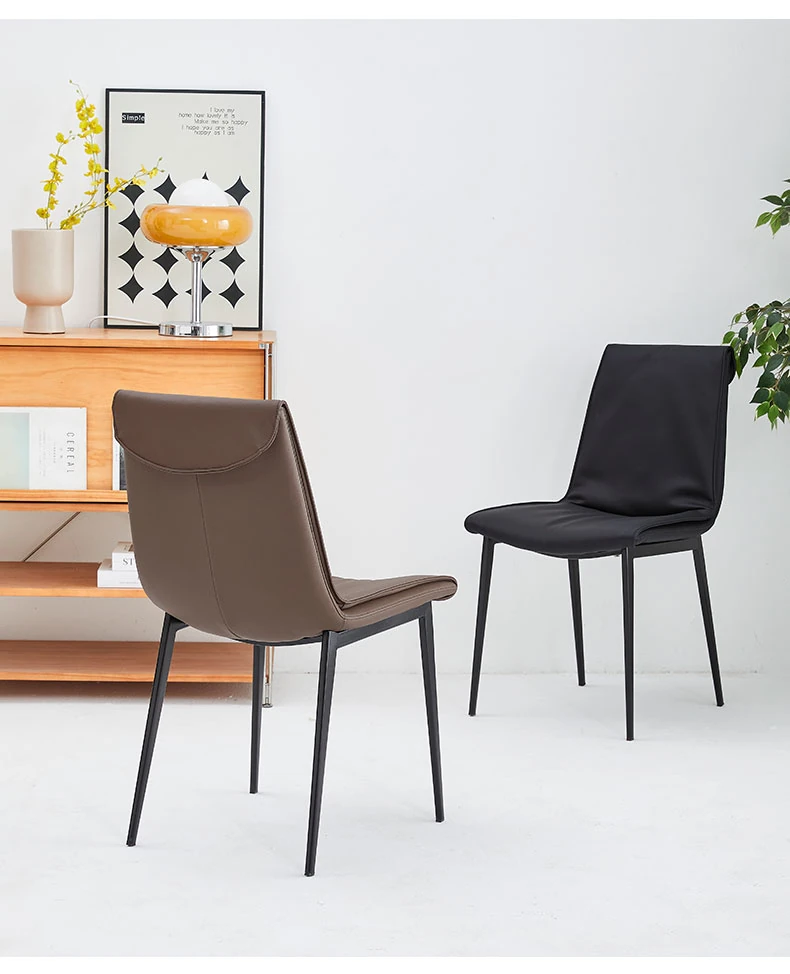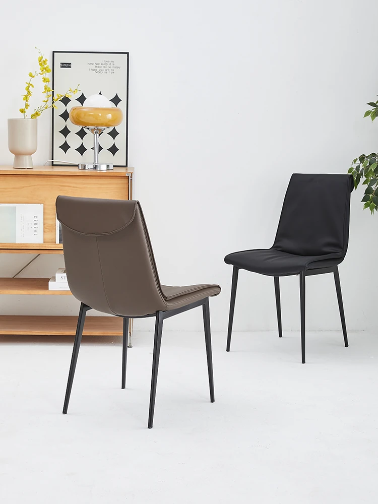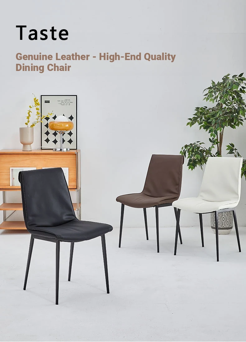 Genuine Leather Dining Chair - Italian Minimalist Design, Stylish Backrest for Home Use, Perfect for Cafés and Modern Dining Rooms, Elevate Your Space with Sophisticated Simplicity.