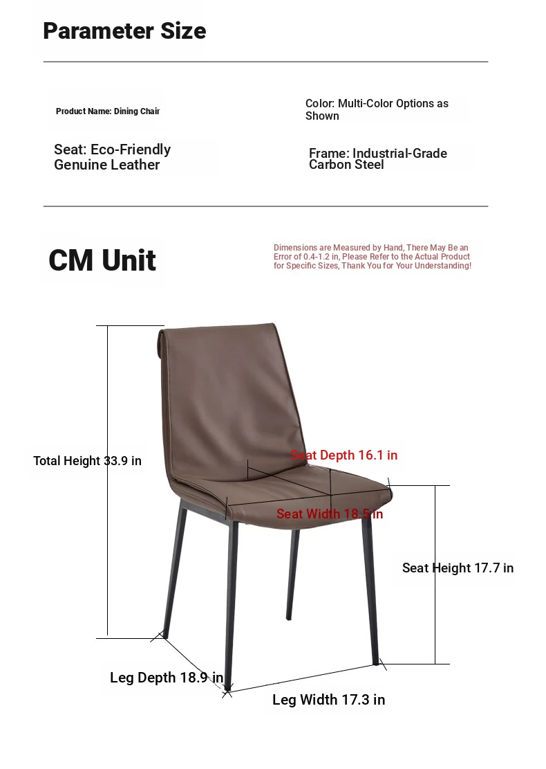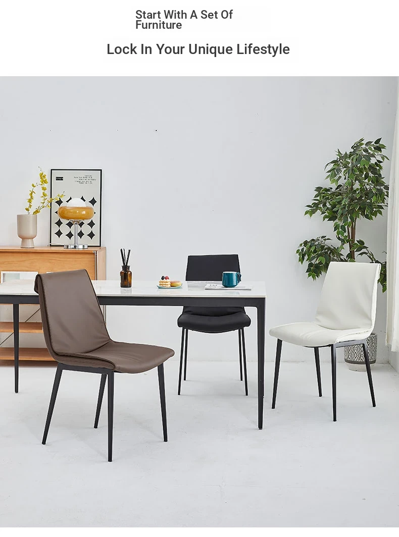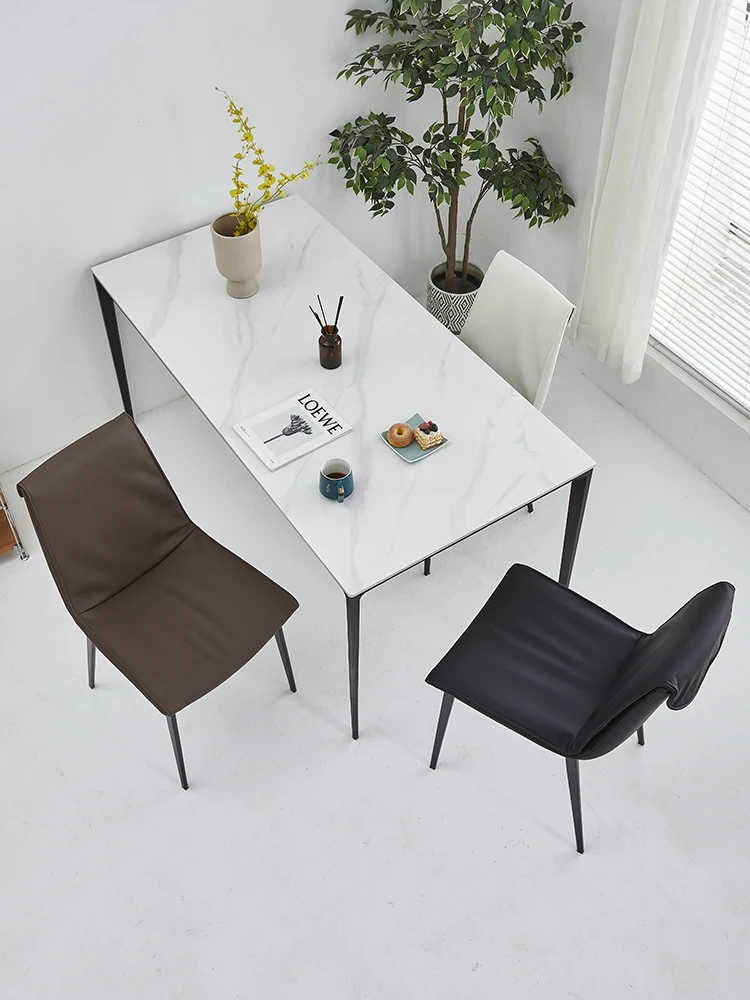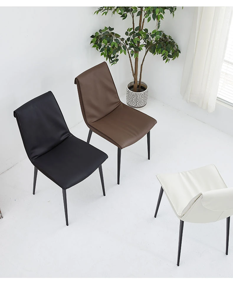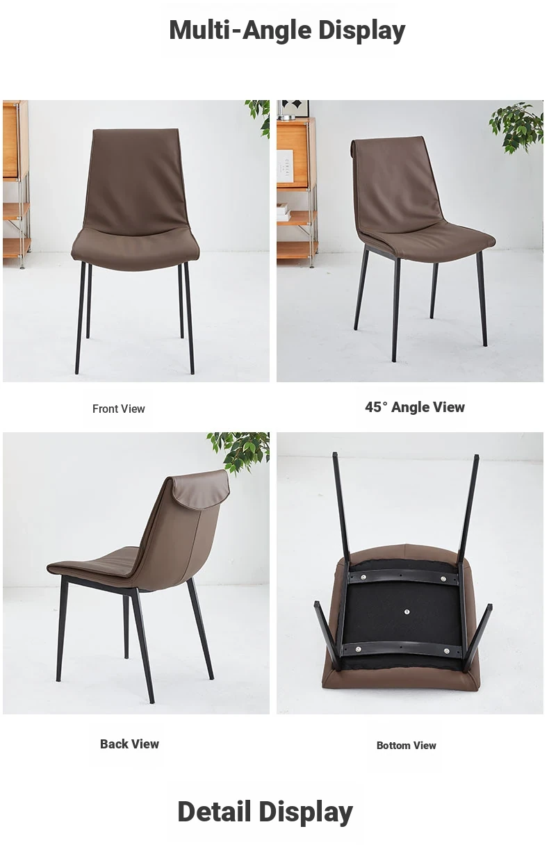 Genuine Leather Dining Chair - Italian Minimalist Design, Stylish Backrest for Home Use, Perfect for Cafés and Modern Dining Rooms, Elevate Your Space with Sophisticated Simplicity.