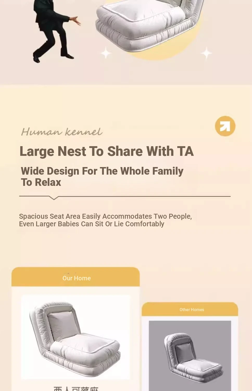 German Lazy Foldable Sofa - Versatile Human & Pet Bed, Large Size for Lounging and Sleeping, Perfect for Tatami, Balcony, and Bedroom Use, Ideal for Singles