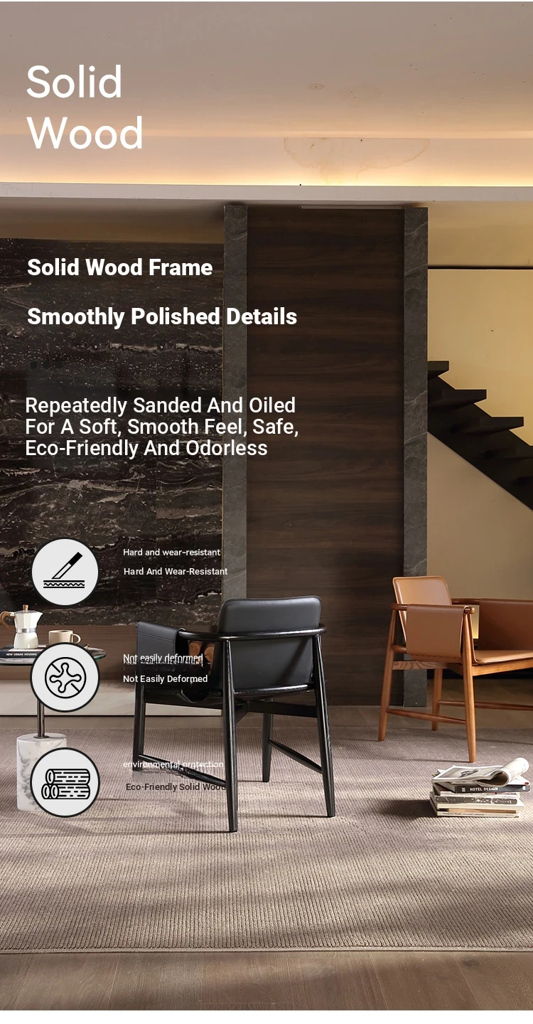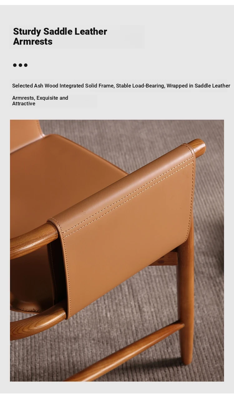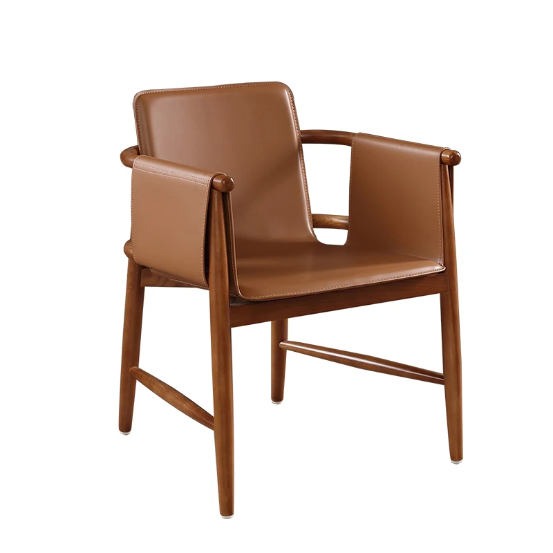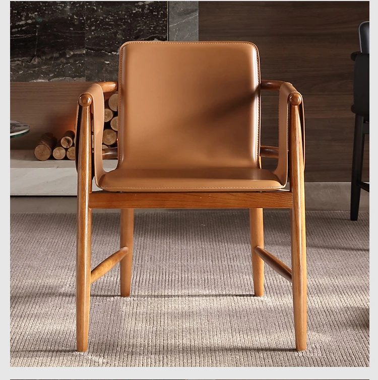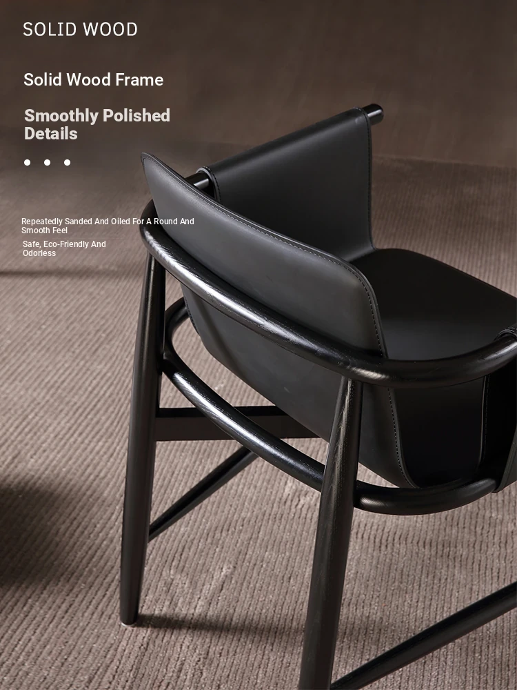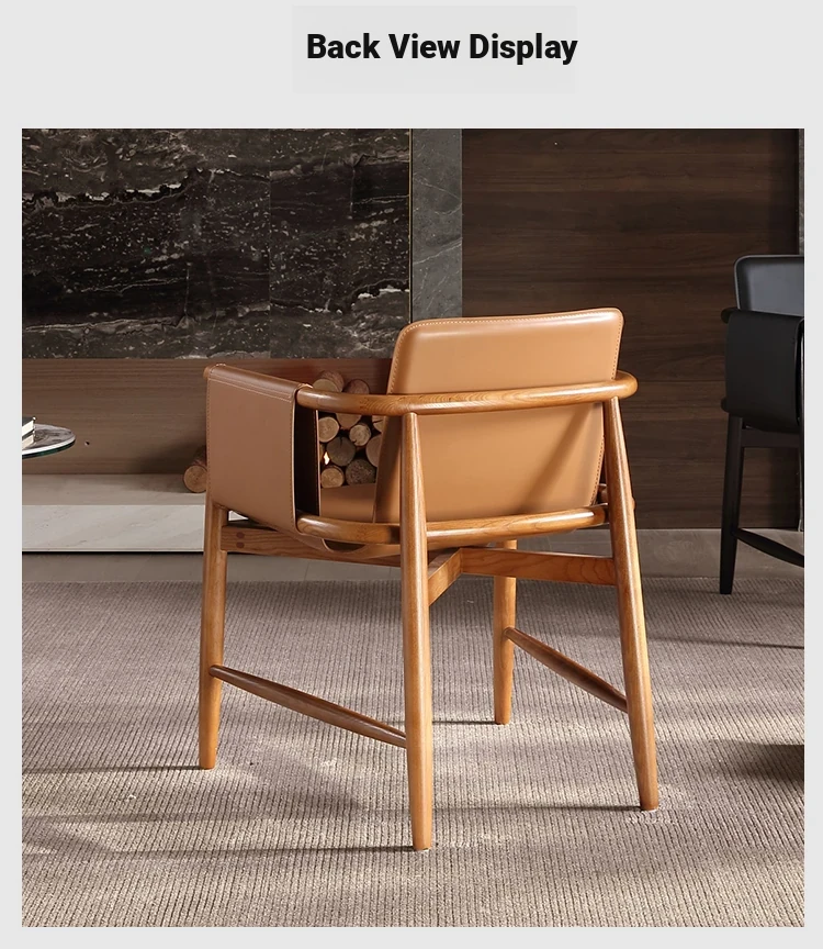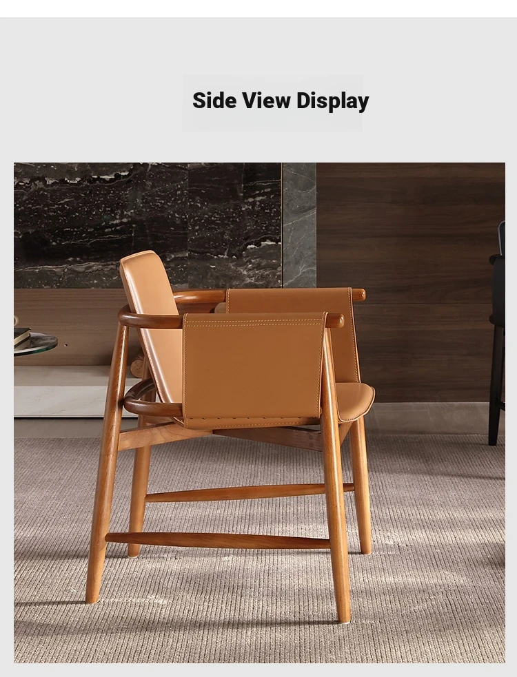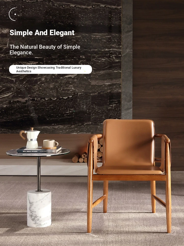 High-End Saddle Leather and White Wax Wood Solid Wood Dining Chair - Modern Minimalist Design for Coffee Shops and Lounge Areas, Perfect for Conversations and Relaxation