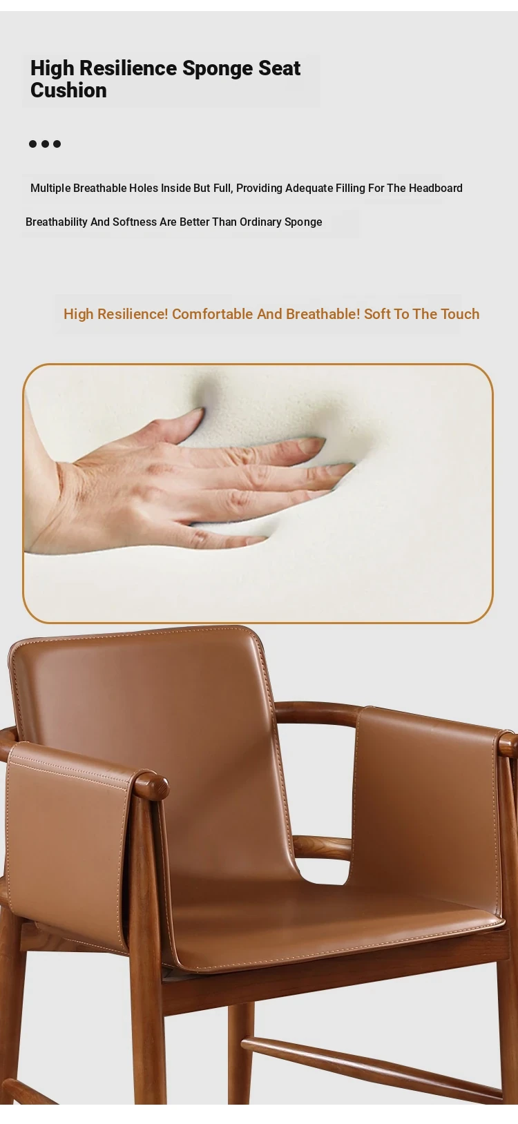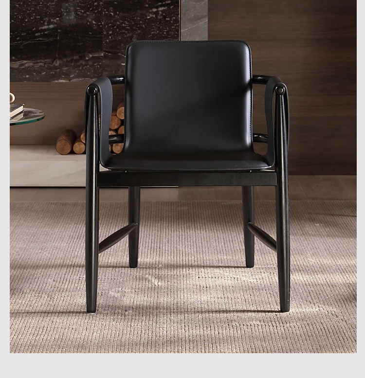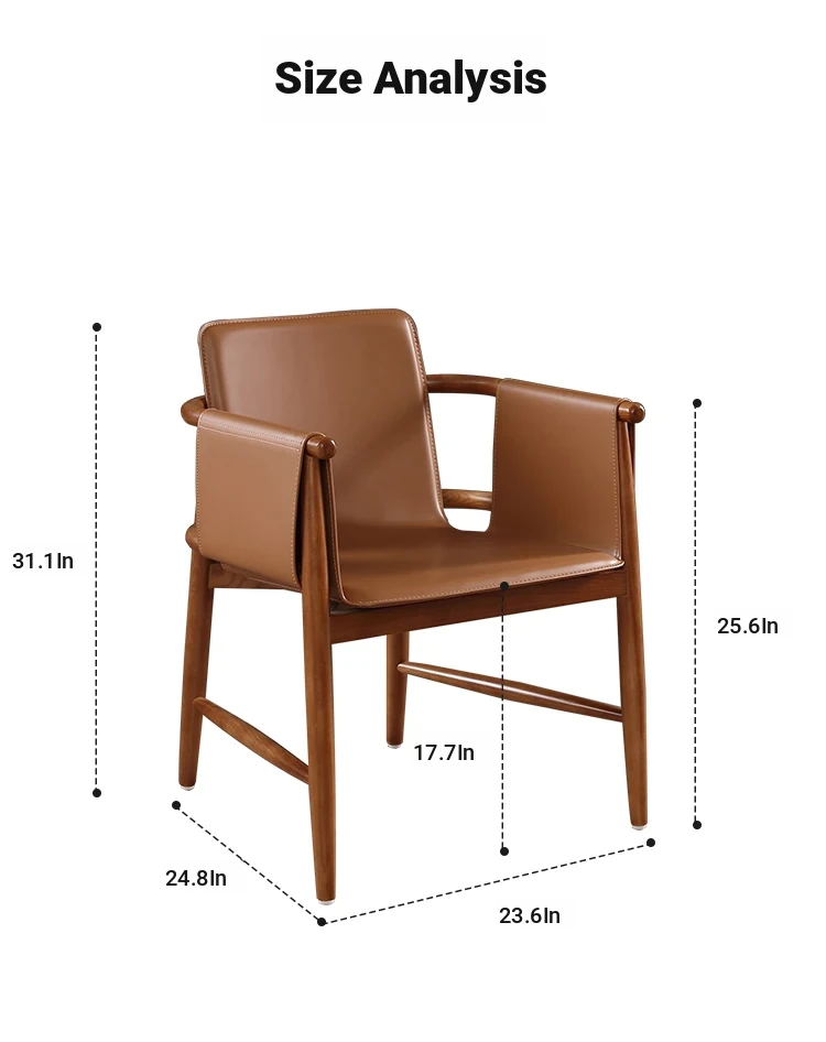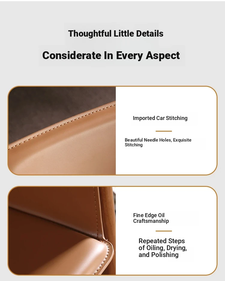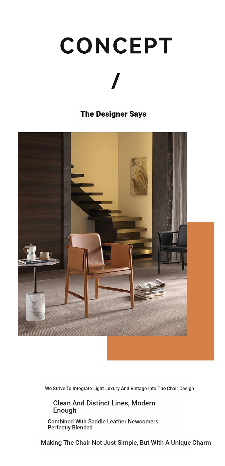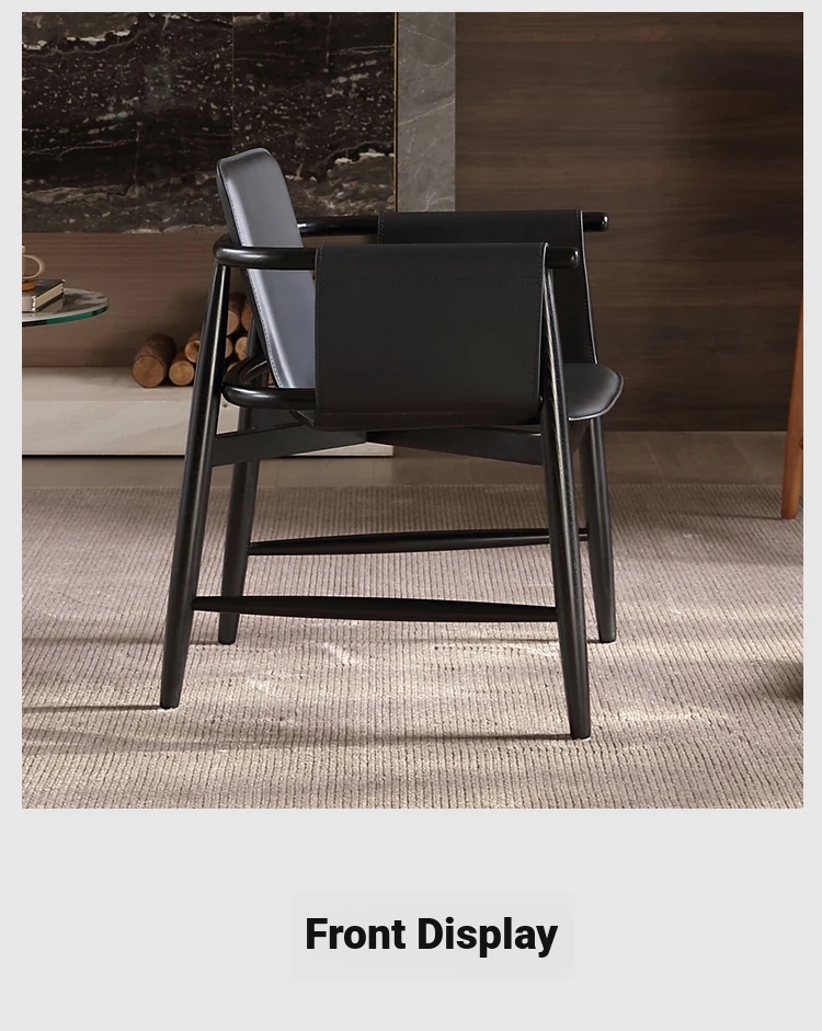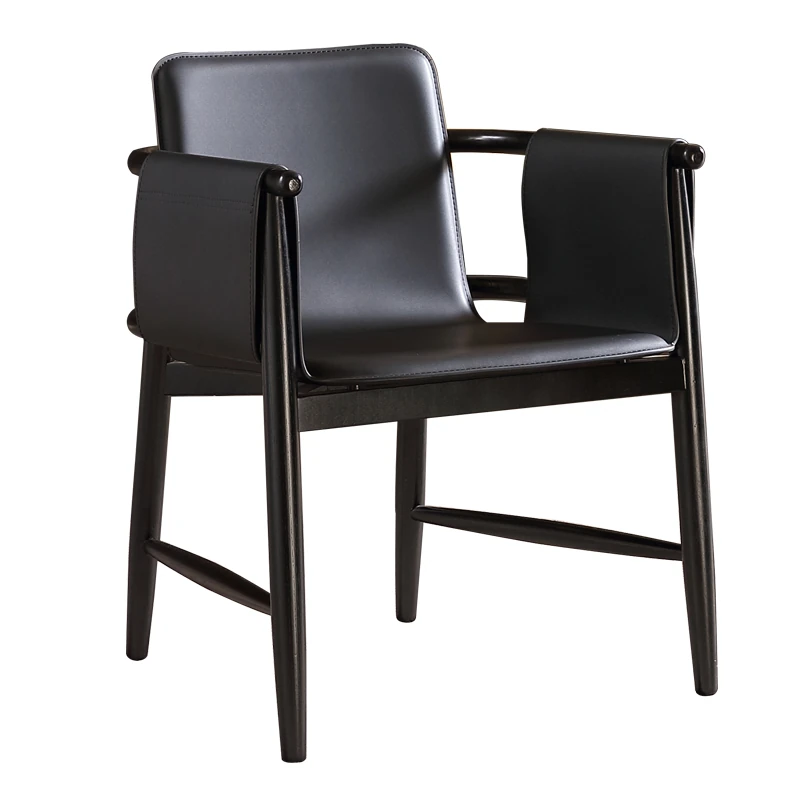 High-End Saddle Leather and White Wax Wood Solid Wood Dining Chair - Modern Minimalist Design for Coffee Shops and Lounge Areas, Perfect for Conversations and Relaxation