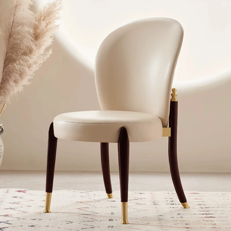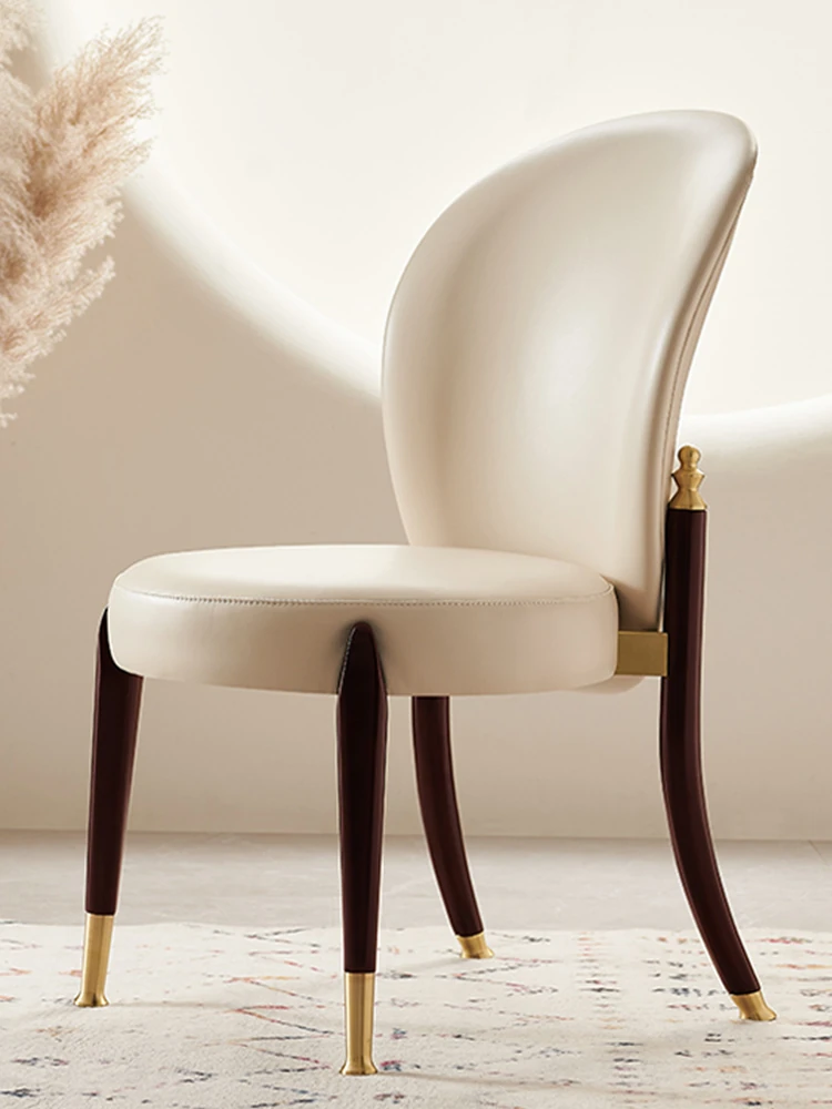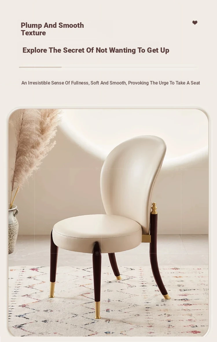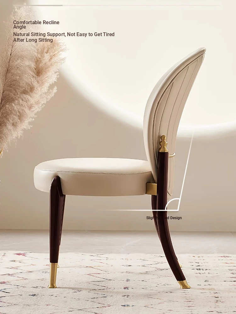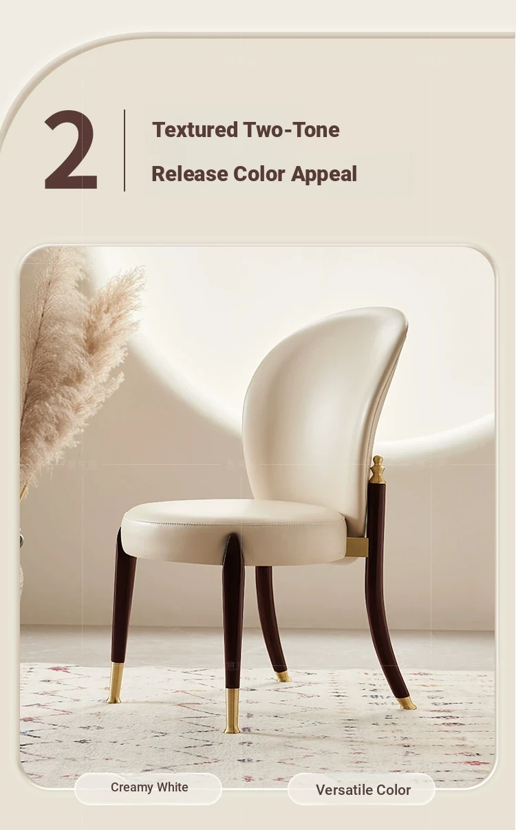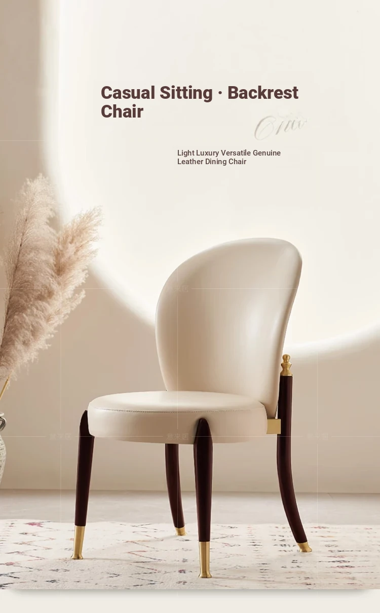 Italian Minimalist Luxe Genuine Leather Dining Chair - Designer Home Office Chair with Wooden Frame in Cream White - Perfect for Modern Spaces