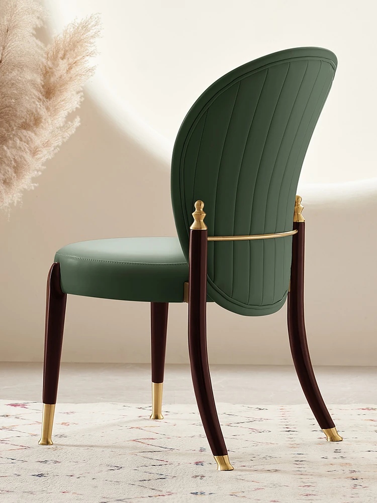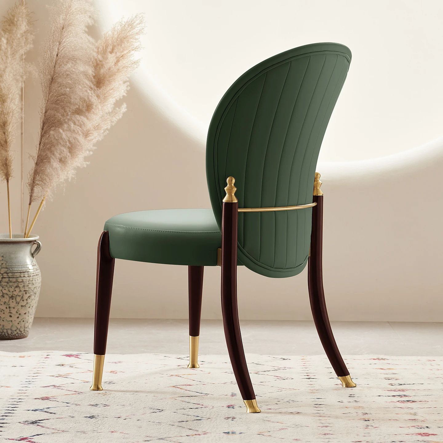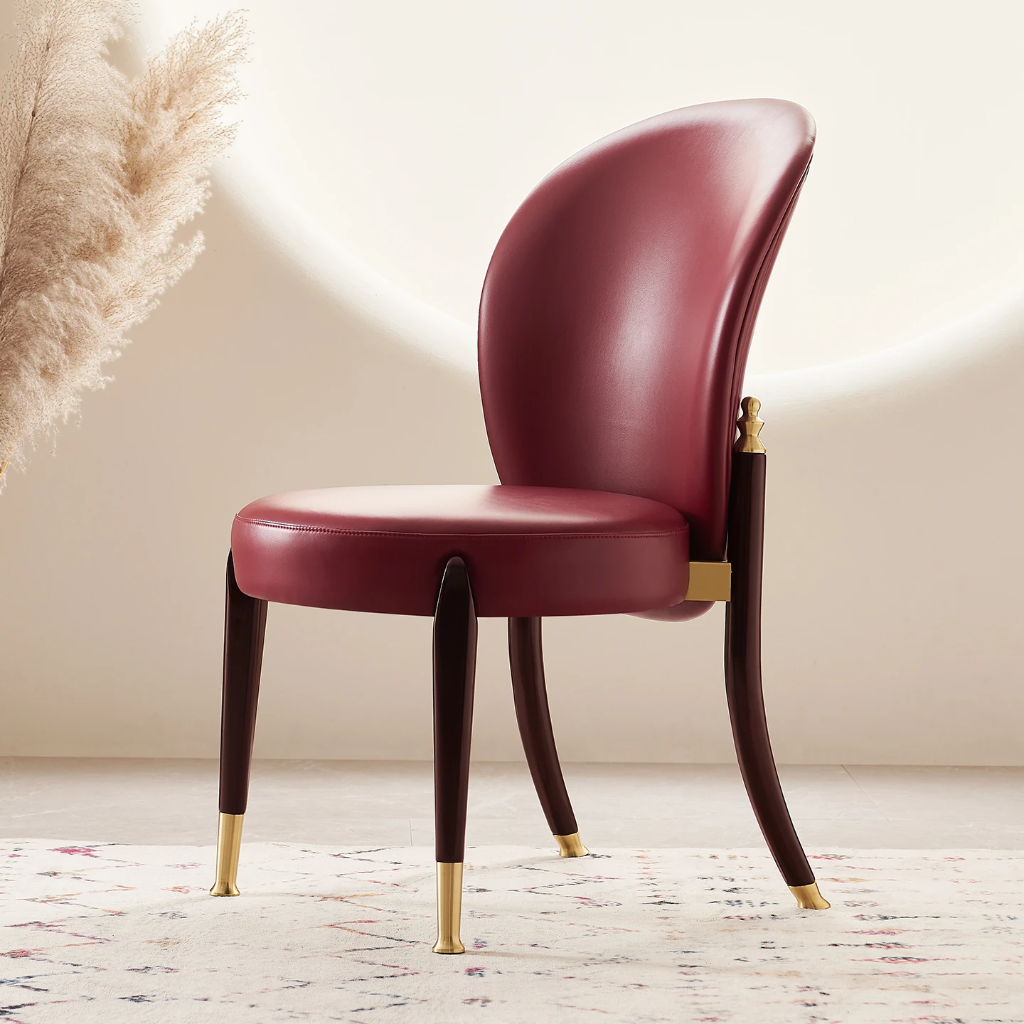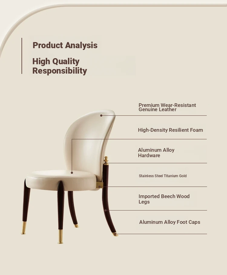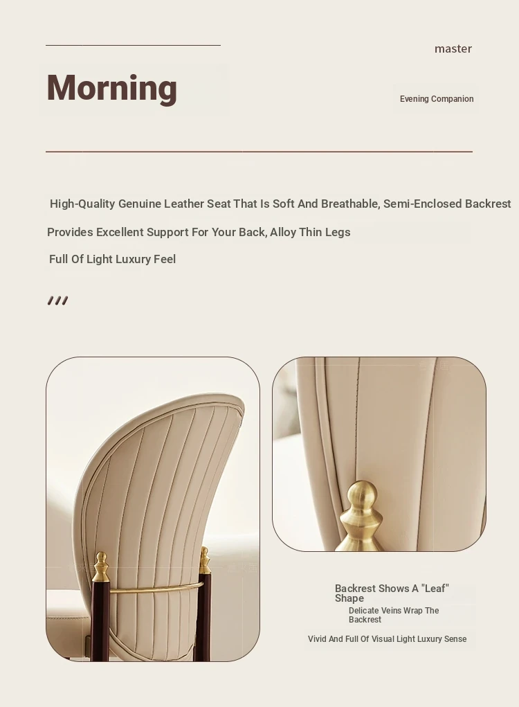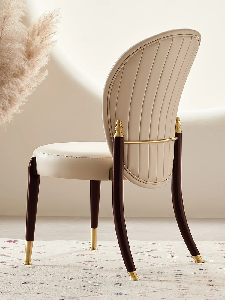 Italian Minimalist Luxe Genuine Leather Dining Chair - Designer Home Office Chair with Wooden Frame in Cream White - Perfect for Modern Spaces