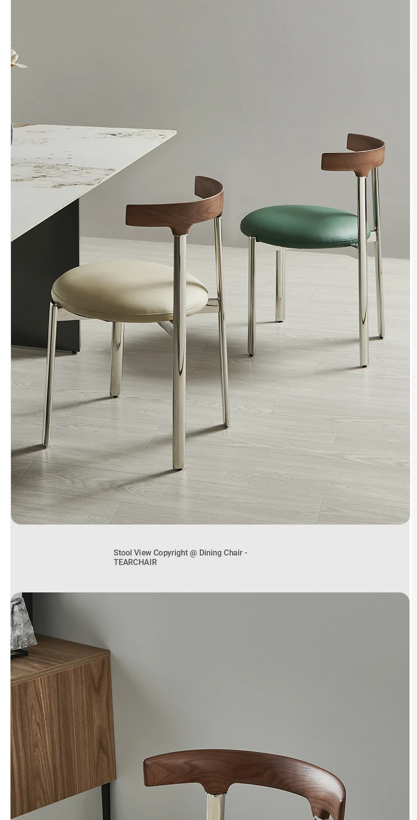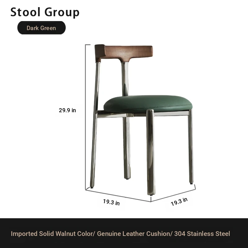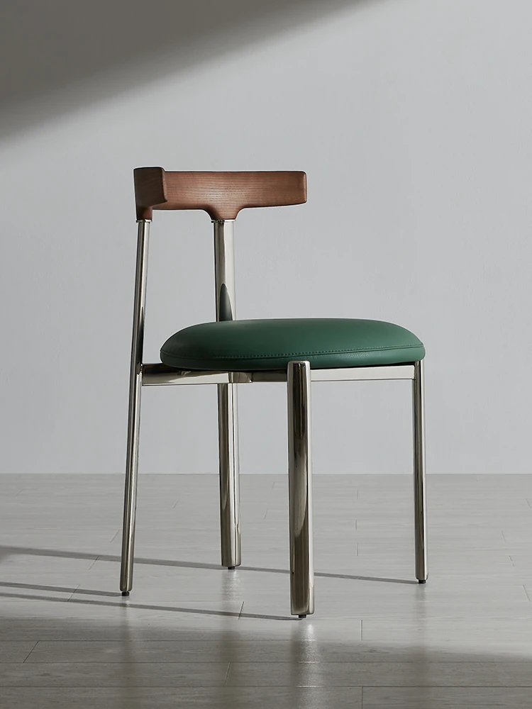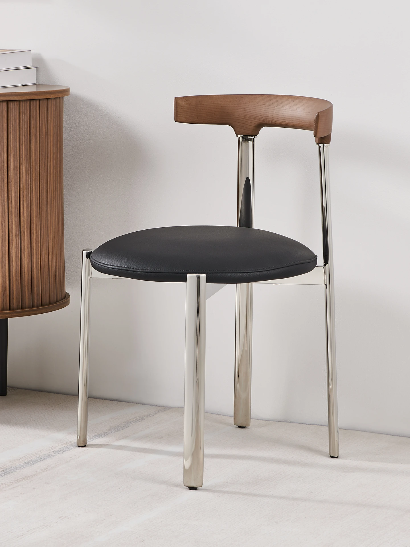 Minimalist Italian Style Stainless Steel Dining Chair - Elegant Solid Wood Study Chair for Home, Dining Table, and Makeup Stool