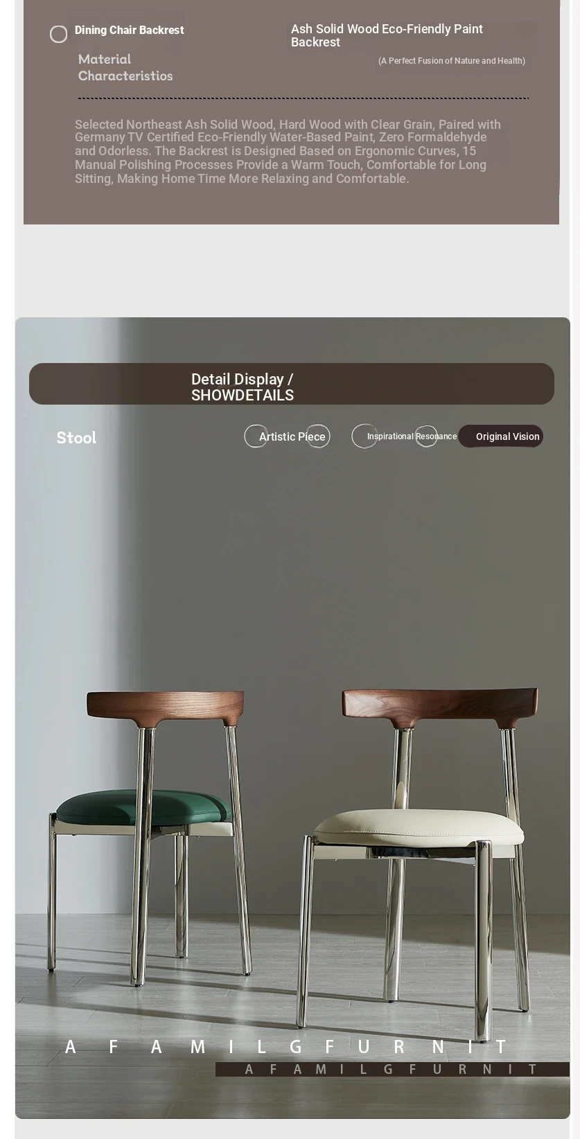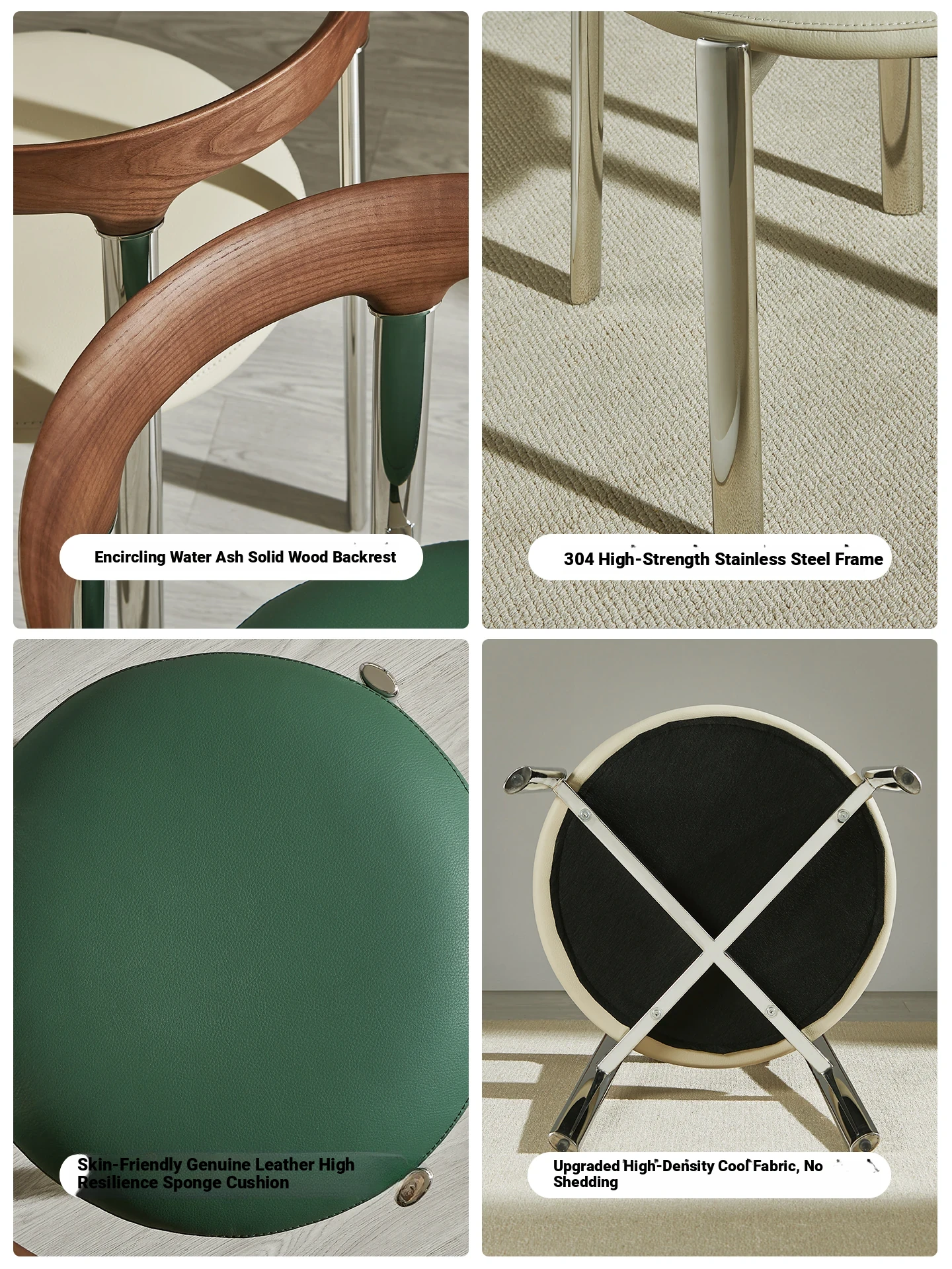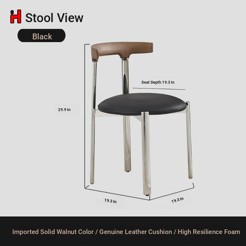 Minimalist Italian Style Stainless Steel Dining Chair - Elegant Solid Wood Study Chair for Home, Dining Table, and Makeup Stool