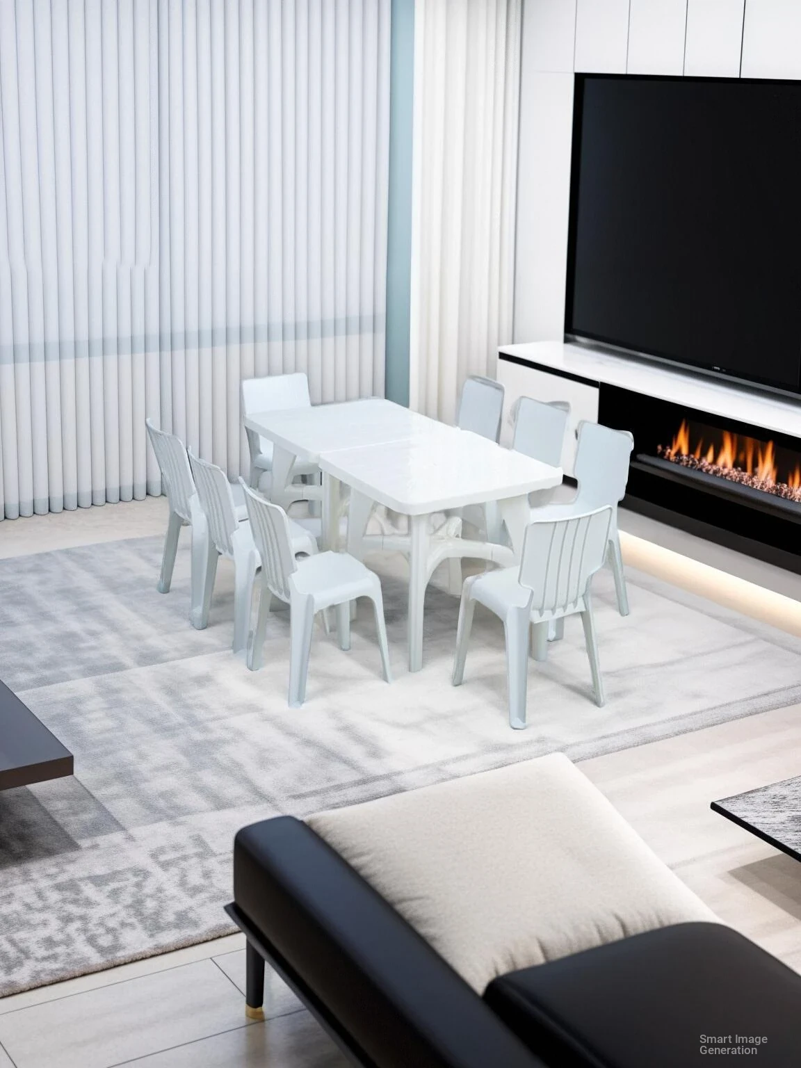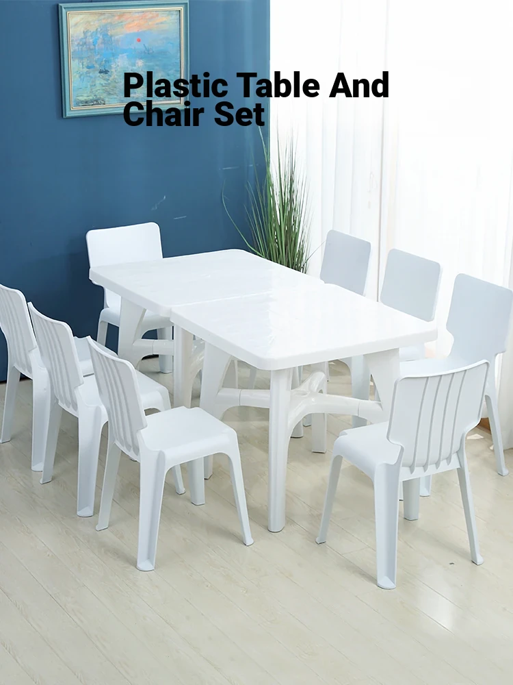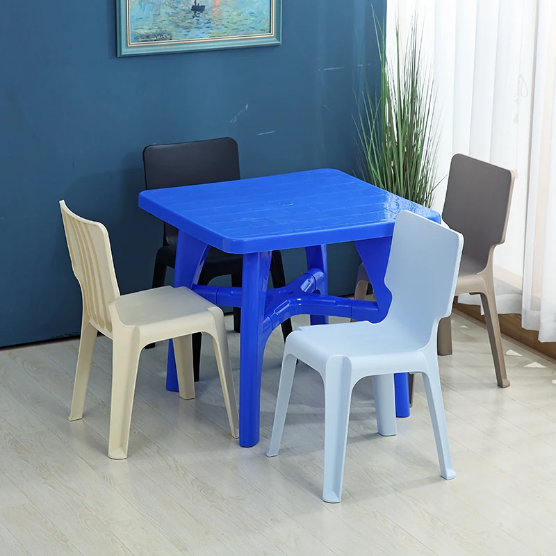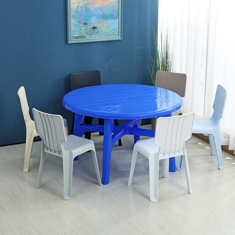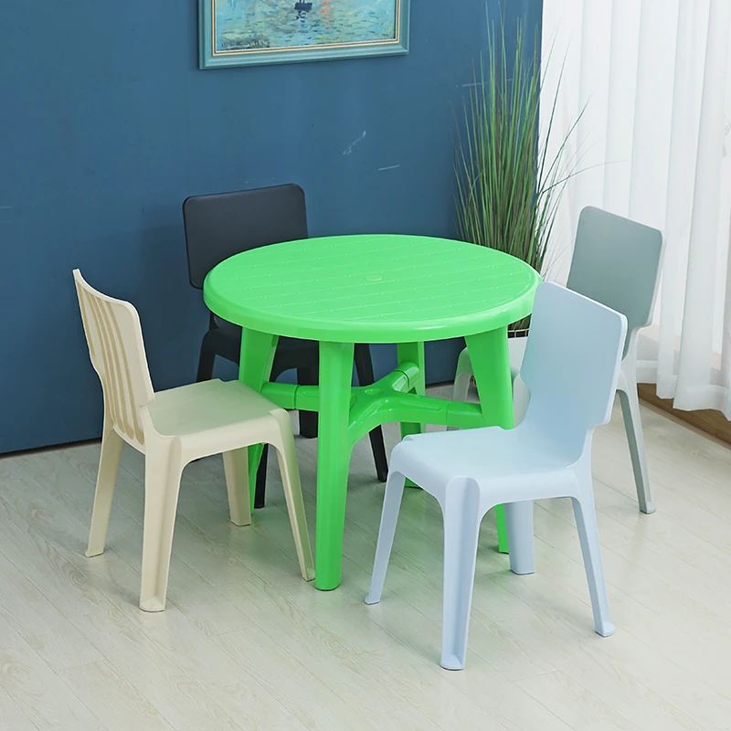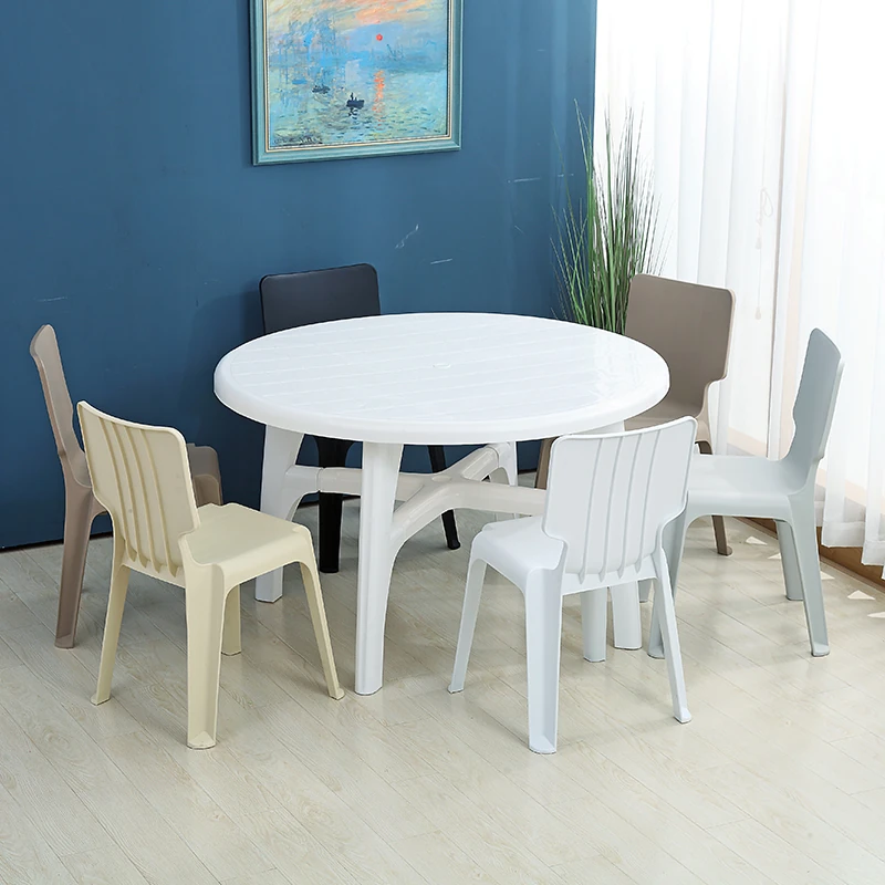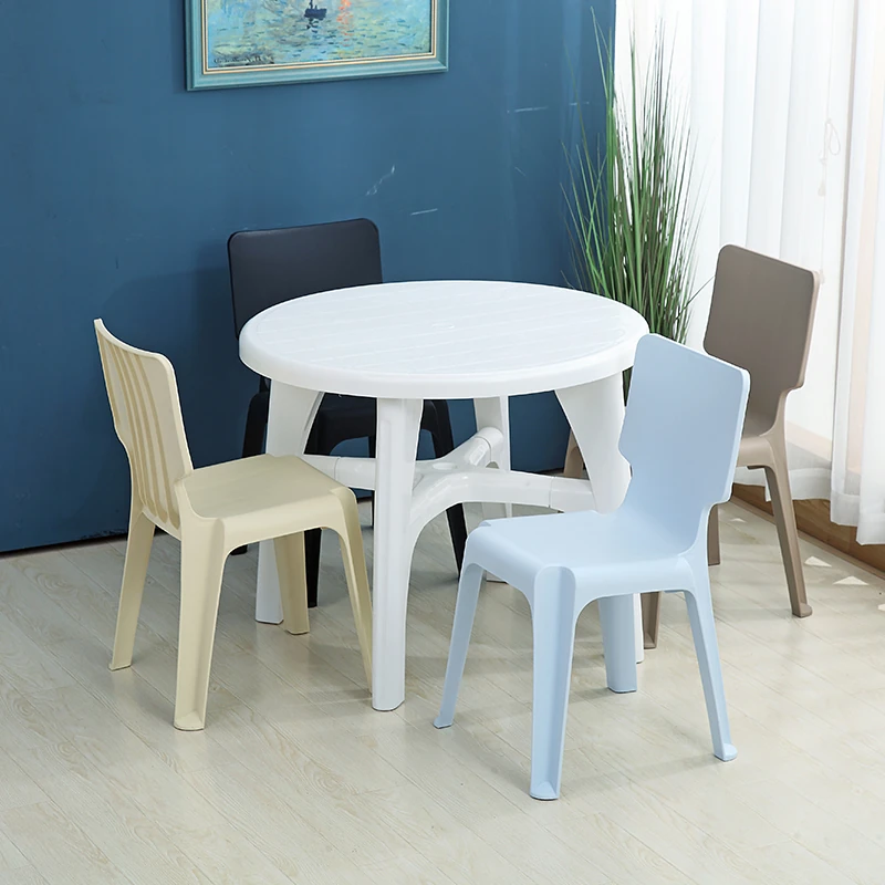 Modern Minimalist Round Dining Table & Square Study Desk Set with Comfortable Backrest Chairs - Durable Thick Plastic Design for Home Use