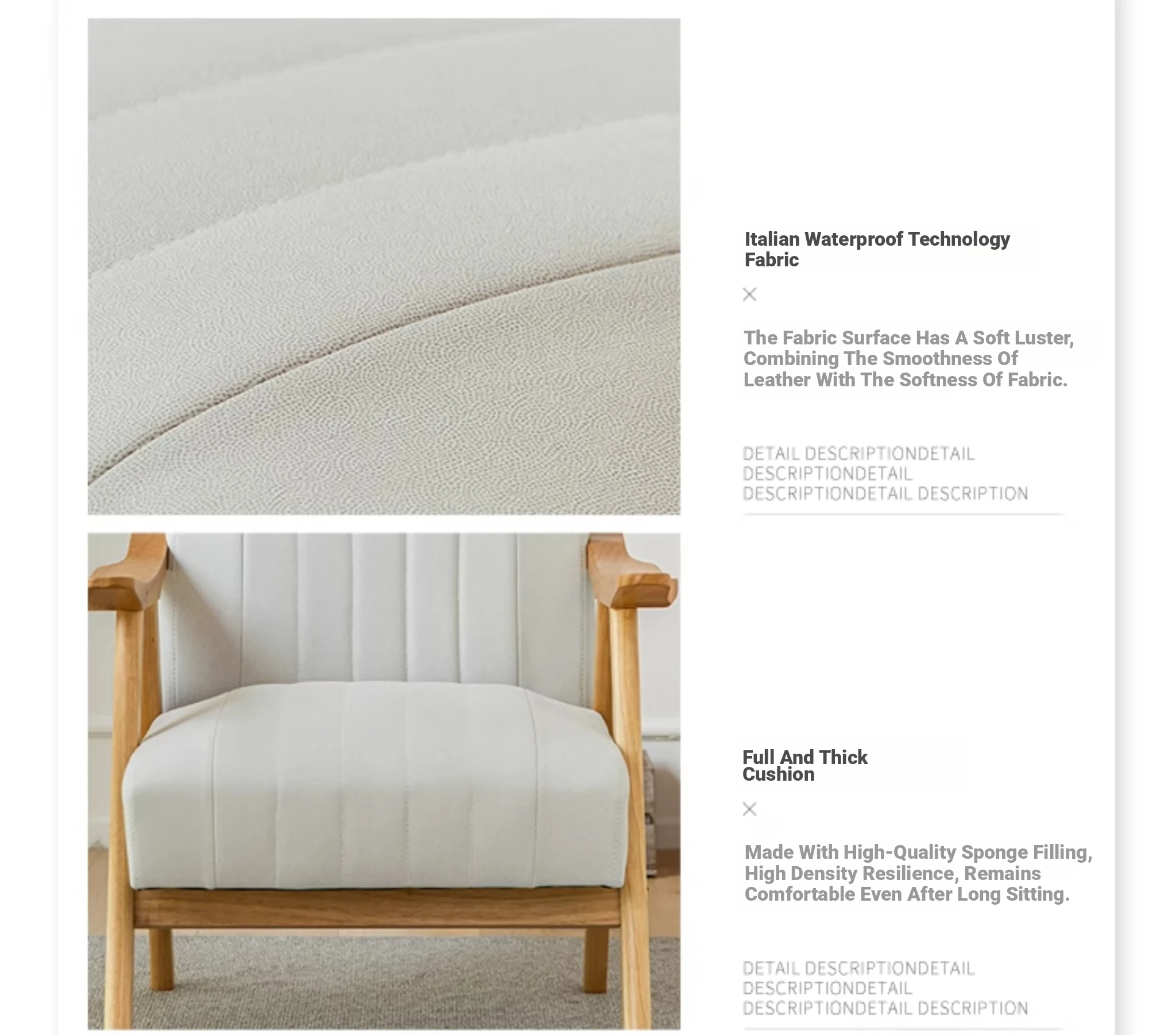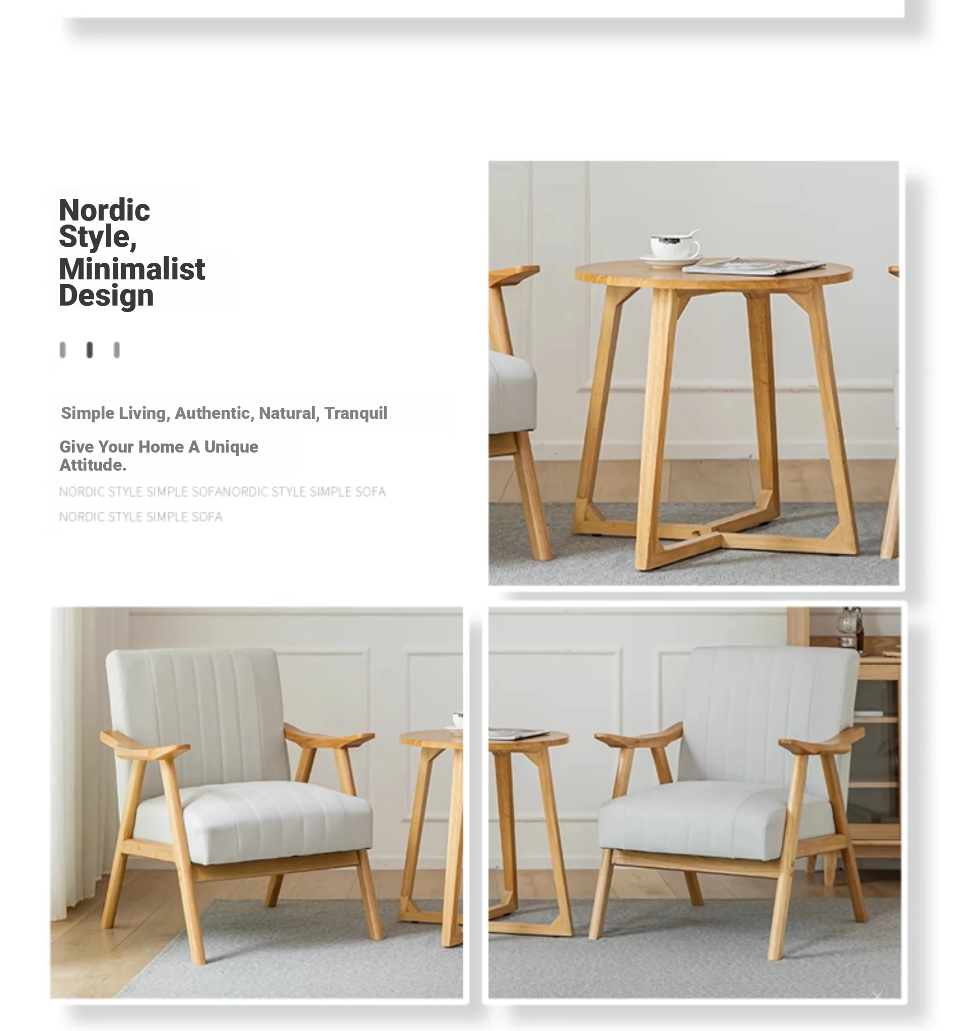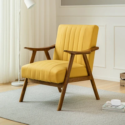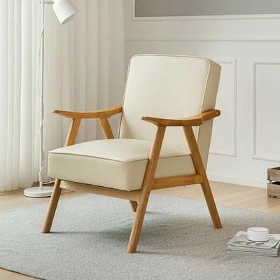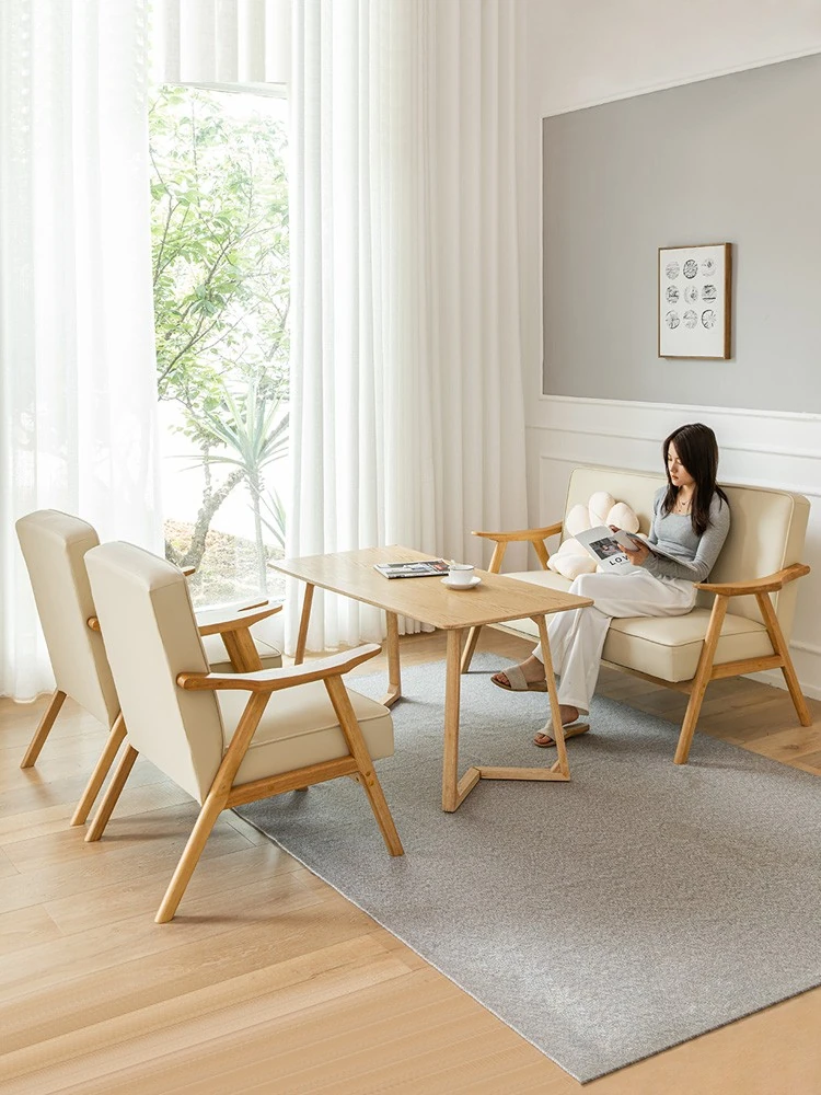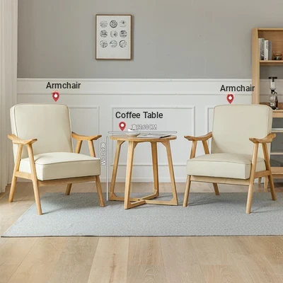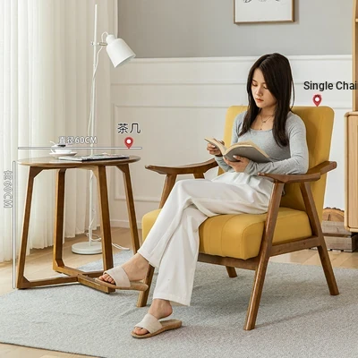 Modern Minimalist Single Sofa Chair with Backrest - Solid Wood Leisure Chair for Balcony, Living Room, Bedroom, and Small Dining Spaces - Durable Technology Fabric