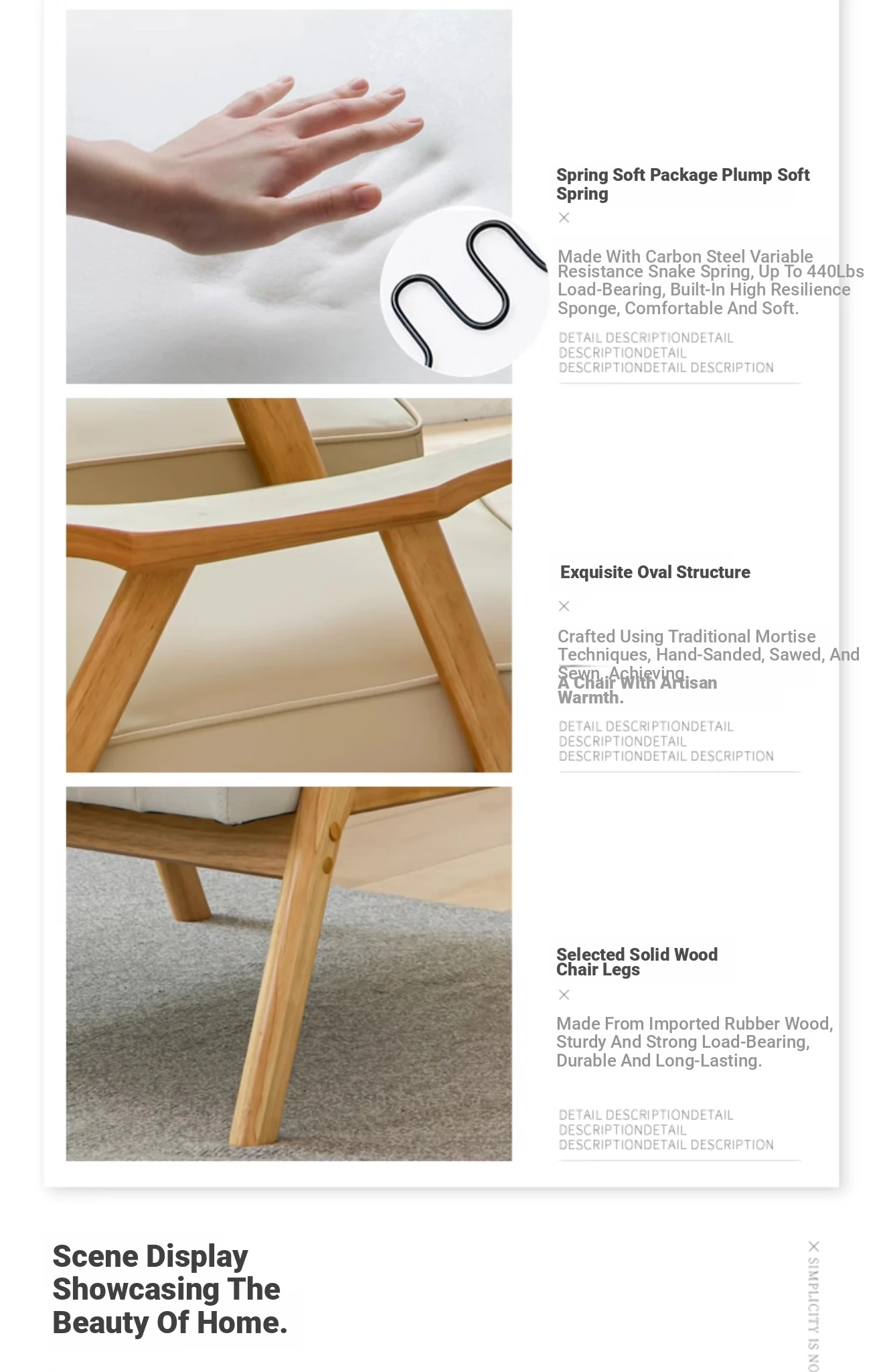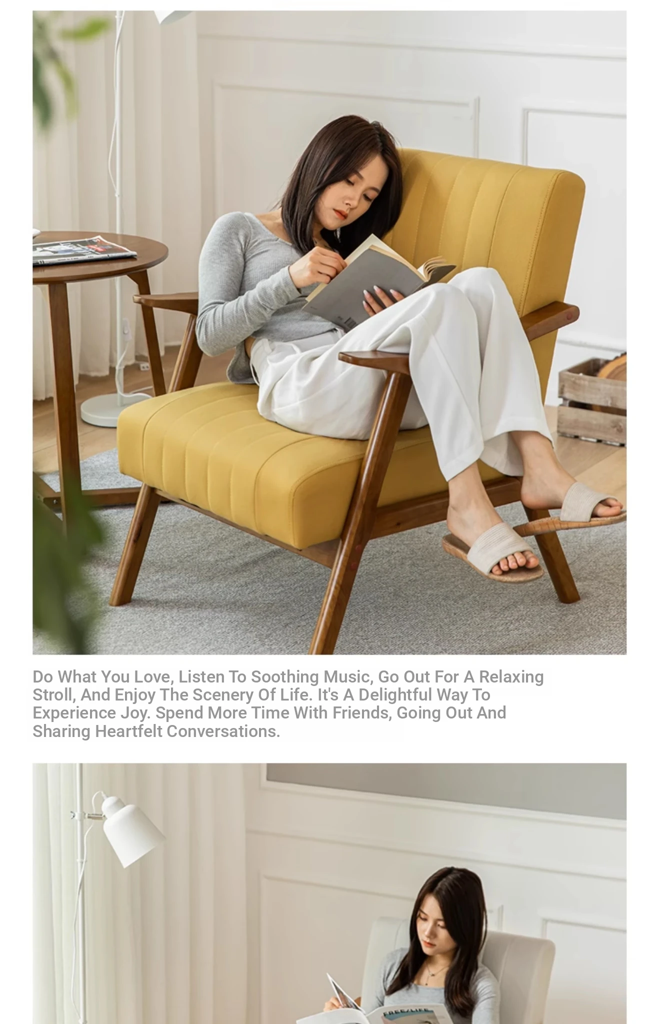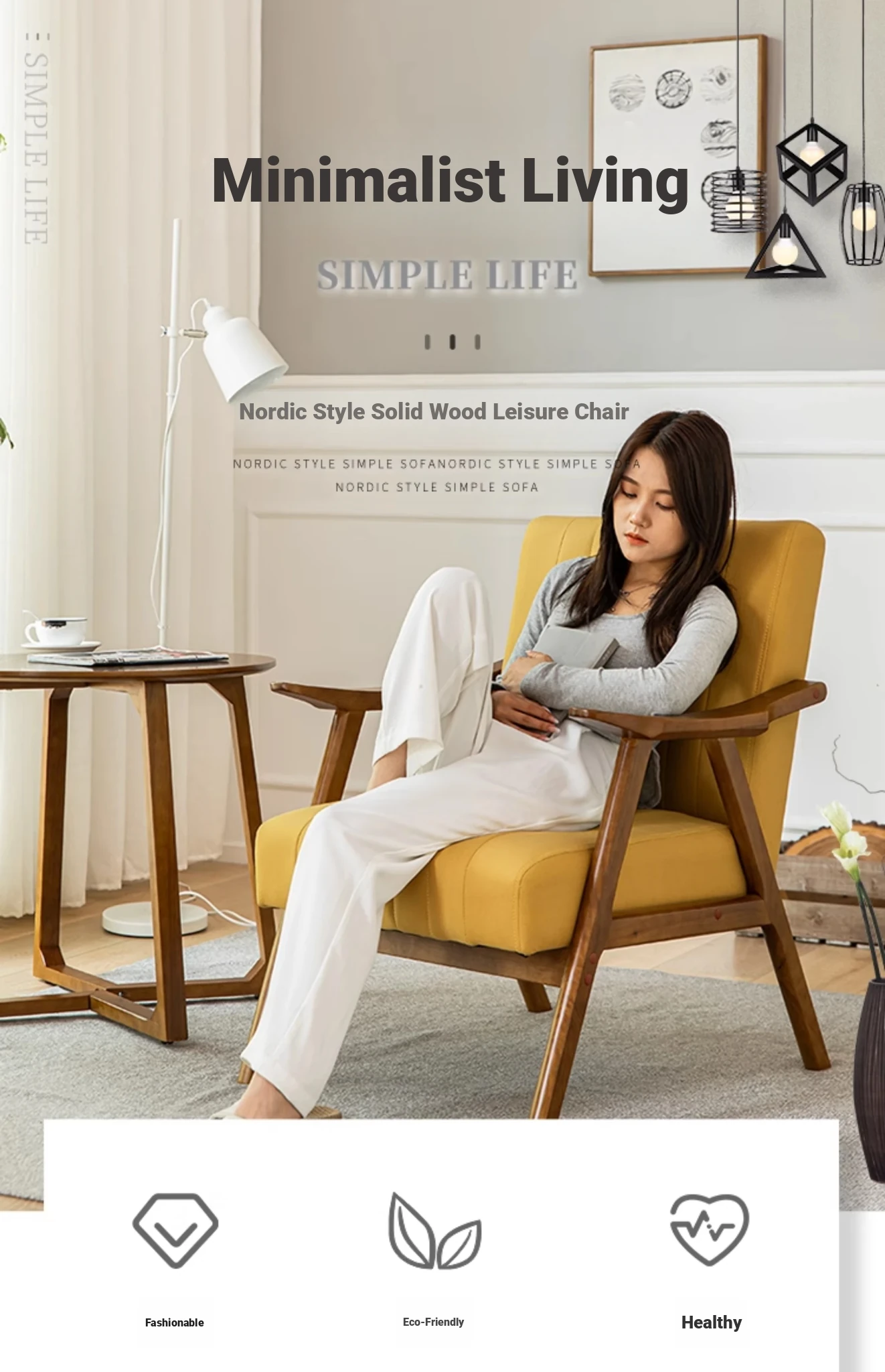 Modern Minimalist Single Sofa Chair with Backrest - Solid Wood Leisure Chair for Balcony, Living Room, Bedroom, and Small Dining Spaces - Durable Technology Fabric