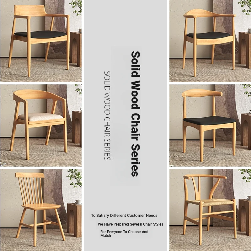 Modern Solid Wood Dining Chairs and Desks Set - Stylish Horn Chairs for Home, Minimalist Design, Comfortable Armrests, Perfect for Dining Rooms and Relaxation Spaces.
