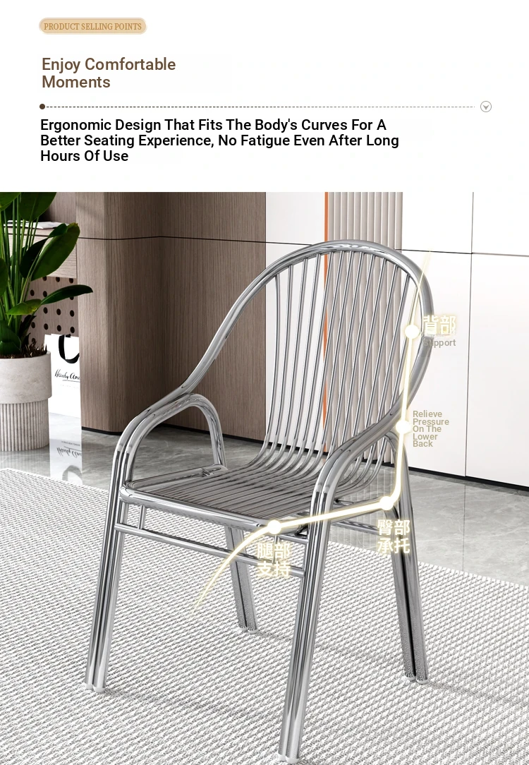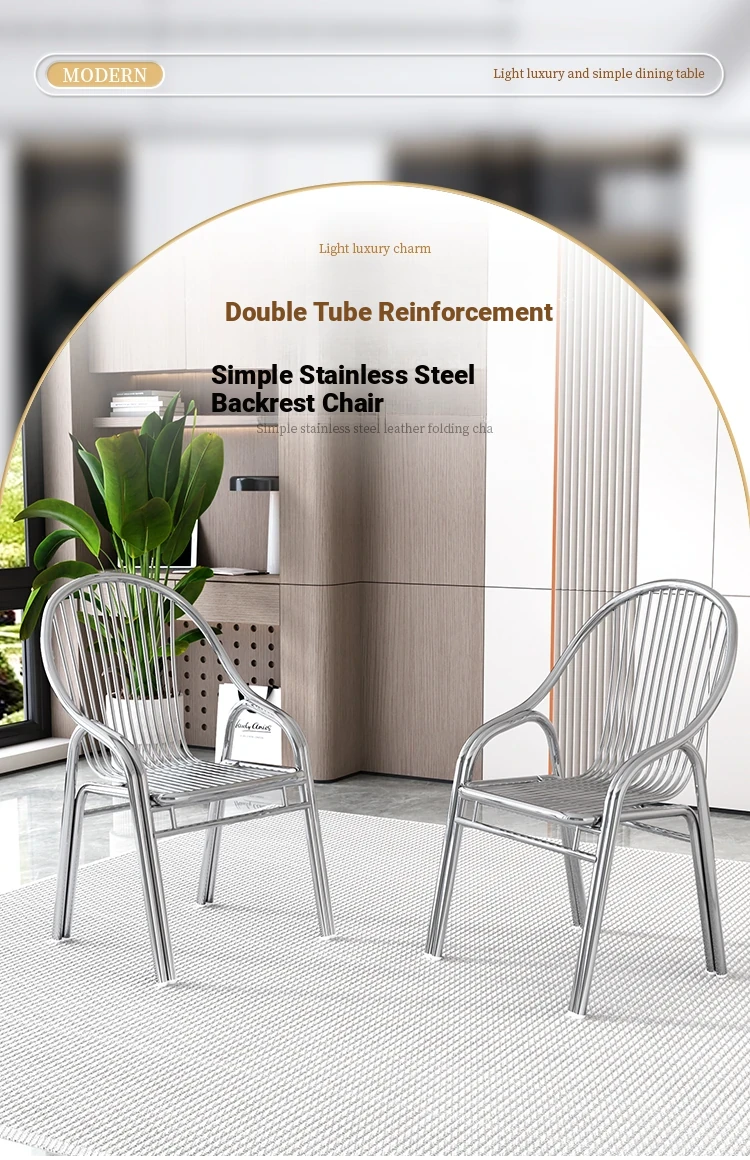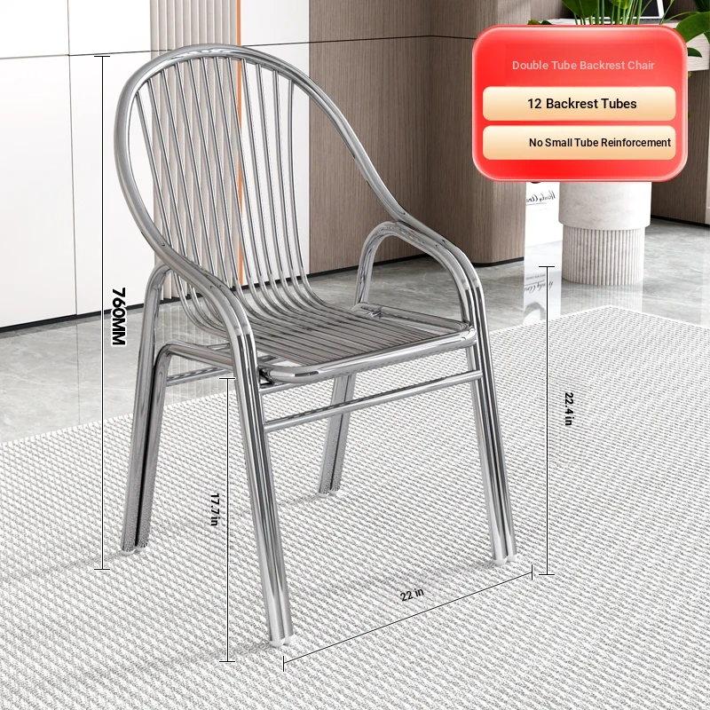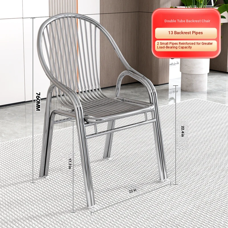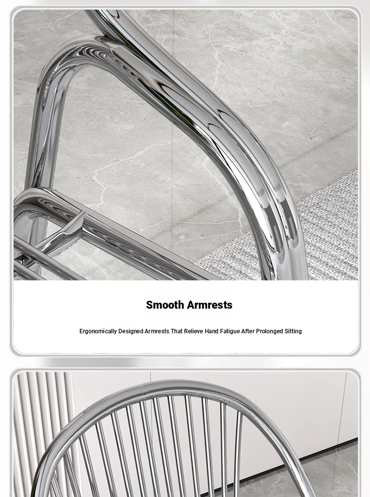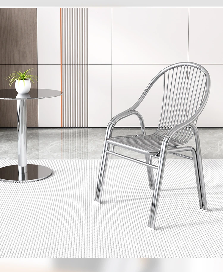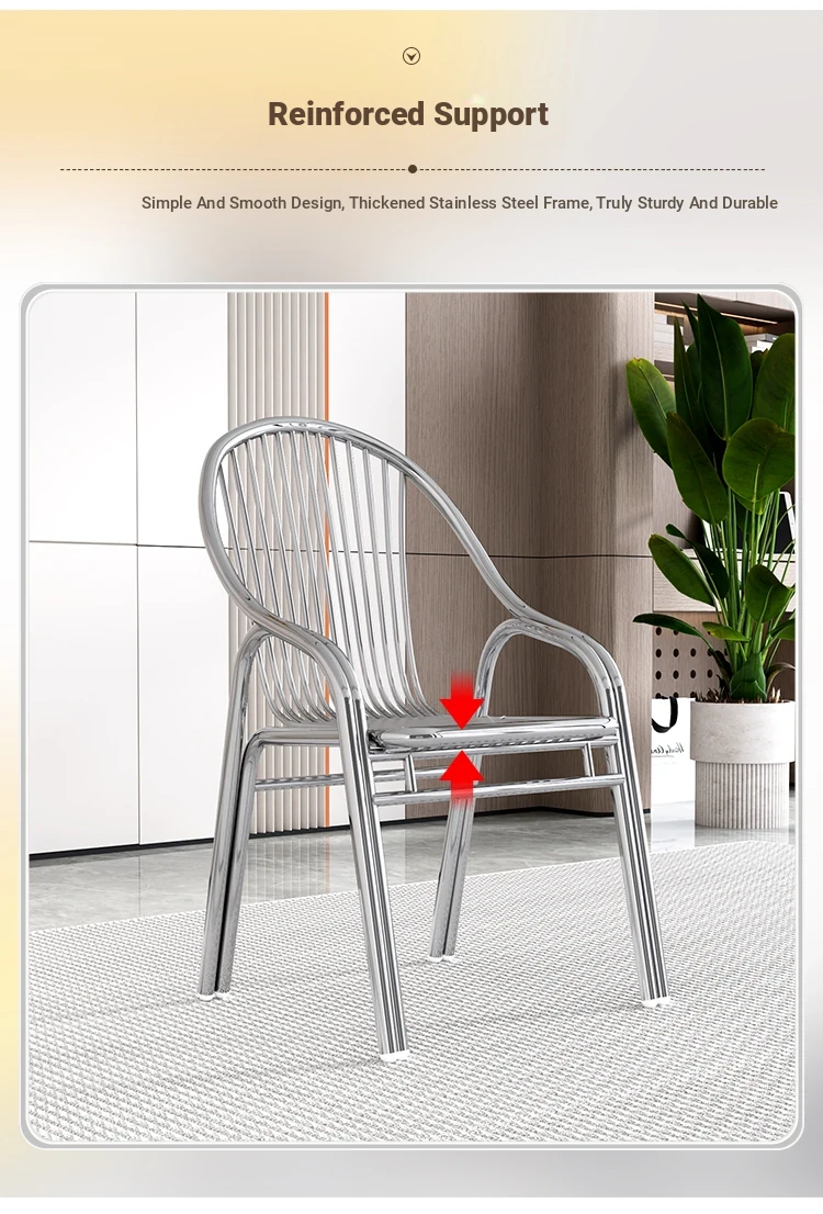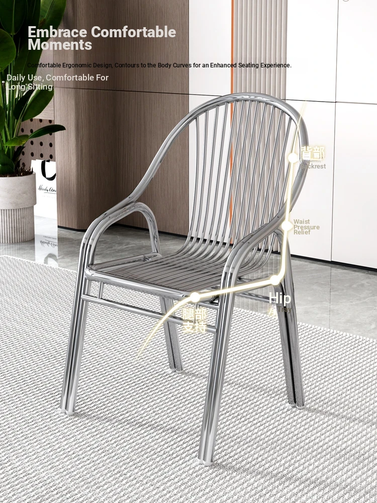 Modern Stainless Steel Dining Chair with Armrests – Stylish and Durable Outdoor Balcony Seat, Perfect for Home Use, Simple and Comfortable Lounge Chair for One