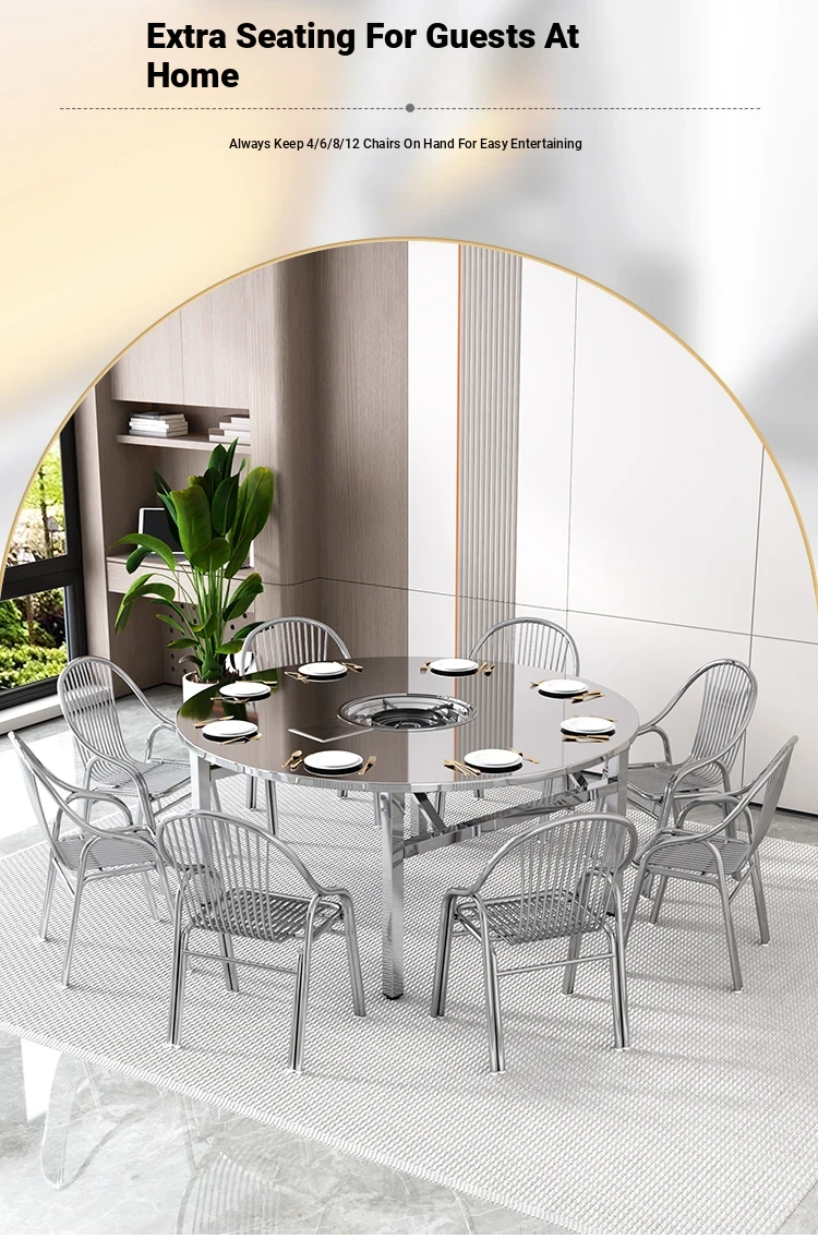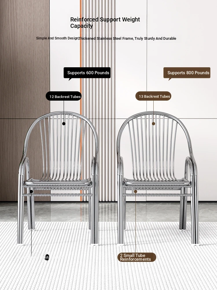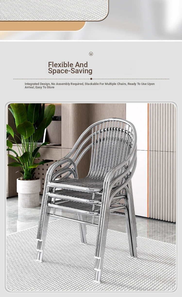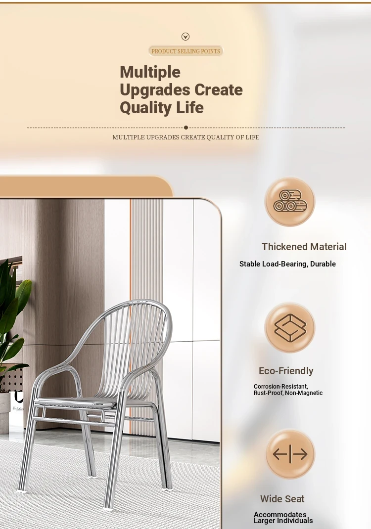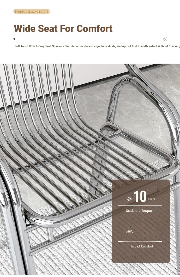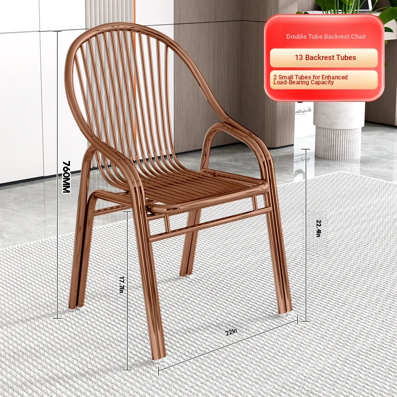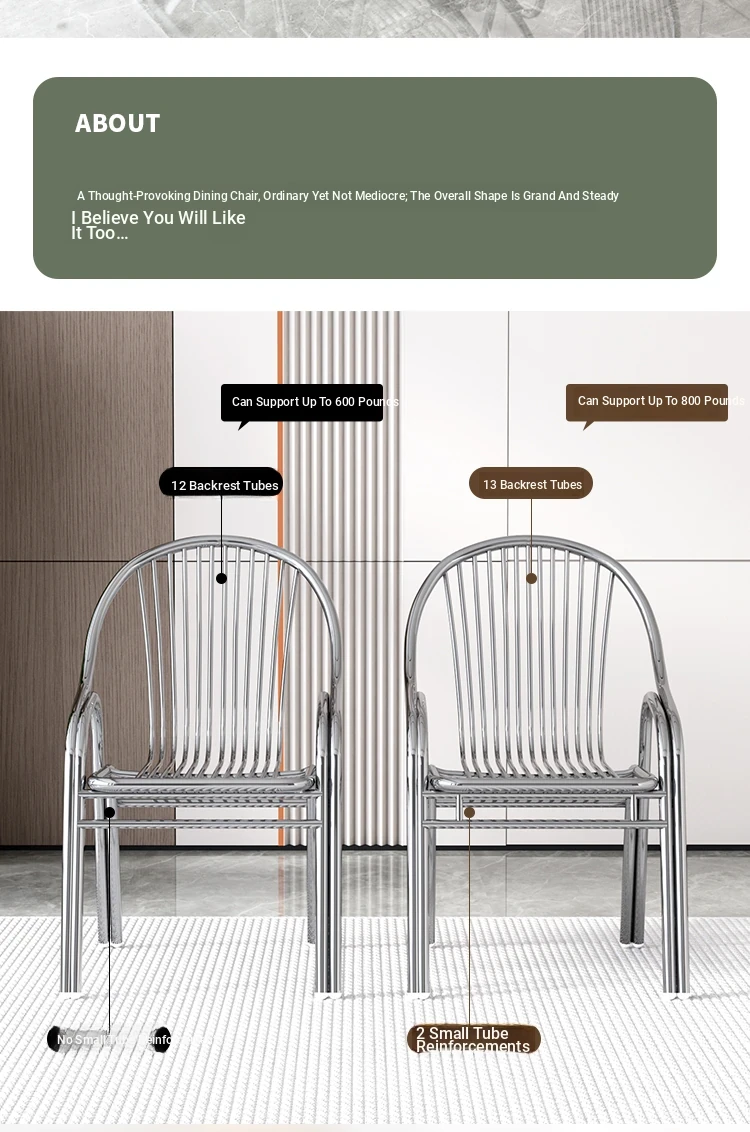 Modern Stainless Steel Dining Chair with Armrests – Stylish and Durable Outdoor Balcony Seat, Perfect for Home Use, Simple and Comfortable Lounge Chair for One