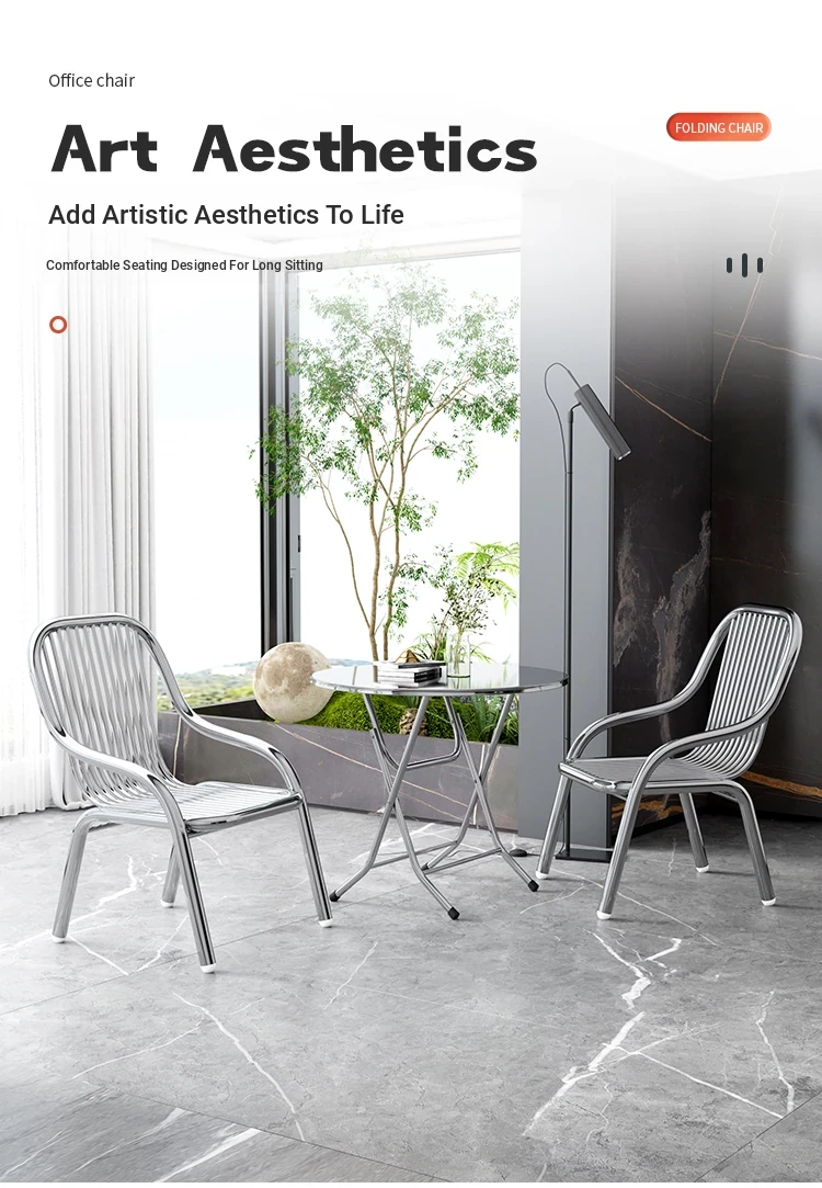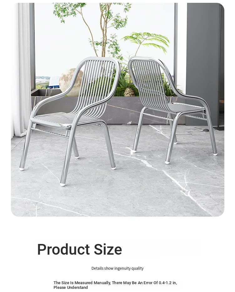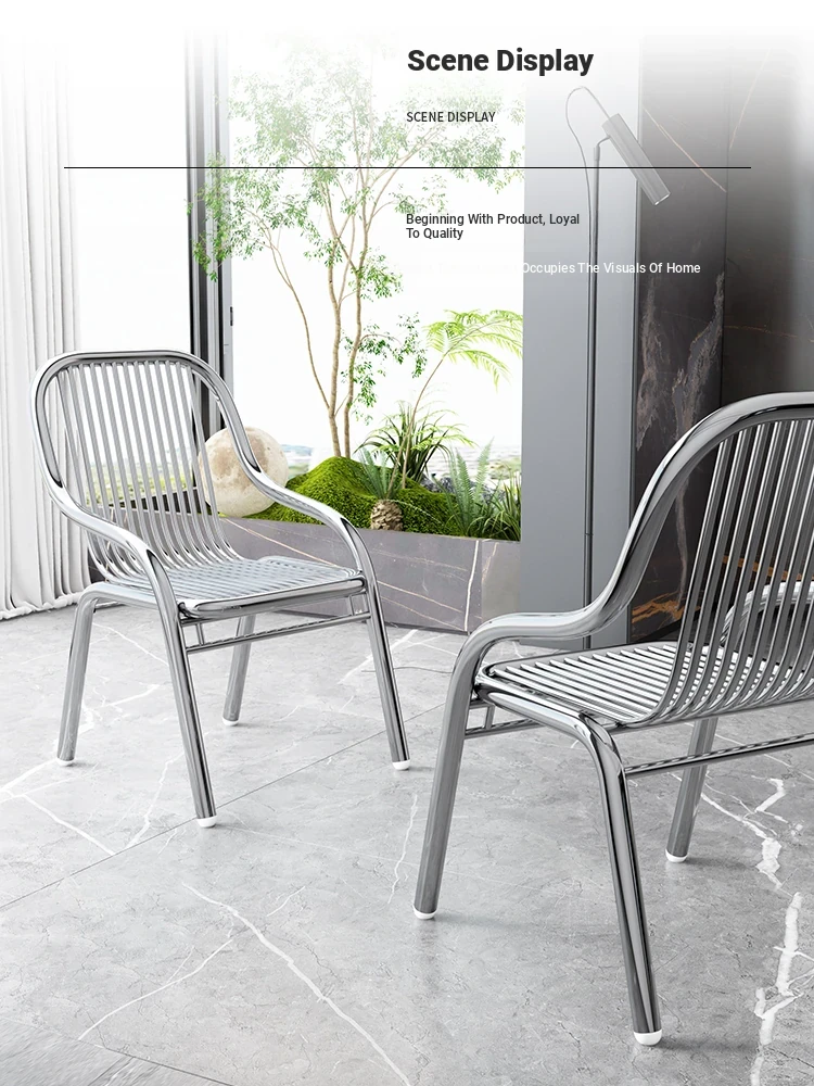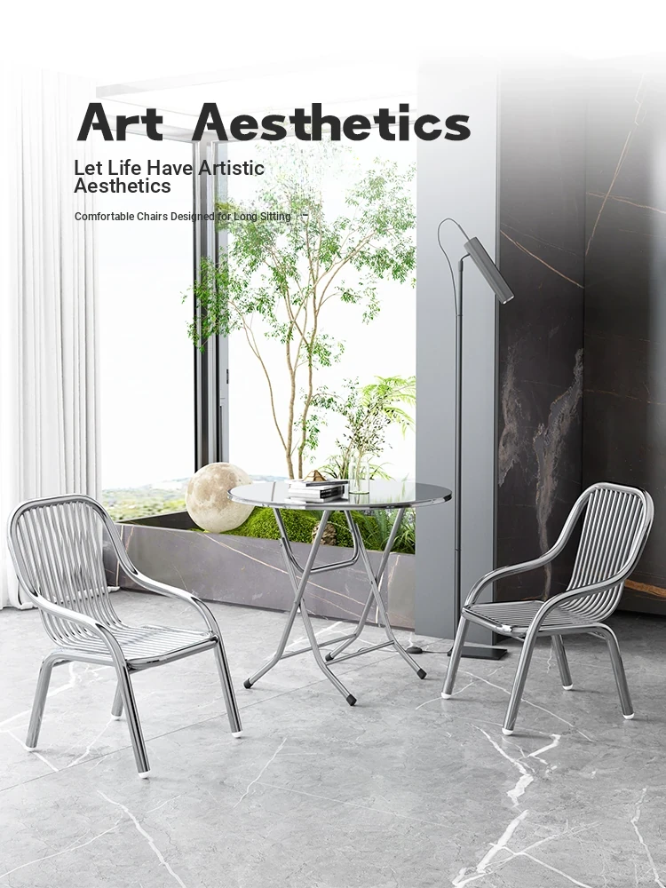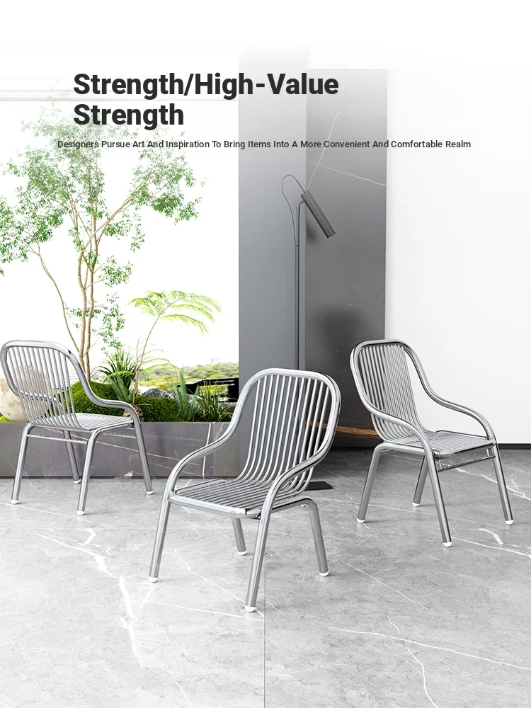 Modern Stainless Steel Outdoor Beach Chair - Single Reclining Lounge Chair for Home Use - Stylish and Minimalist Design - Comfortable Armchair for Relaxation and Dining