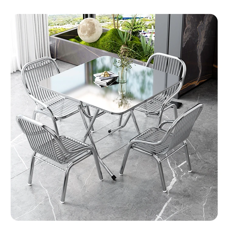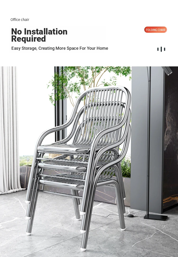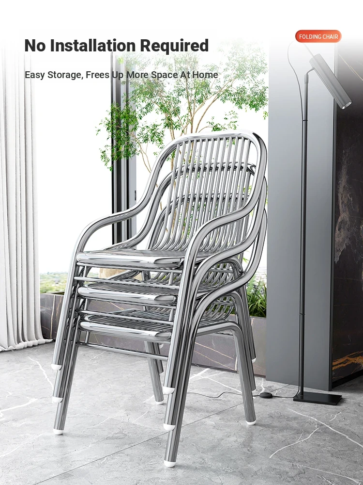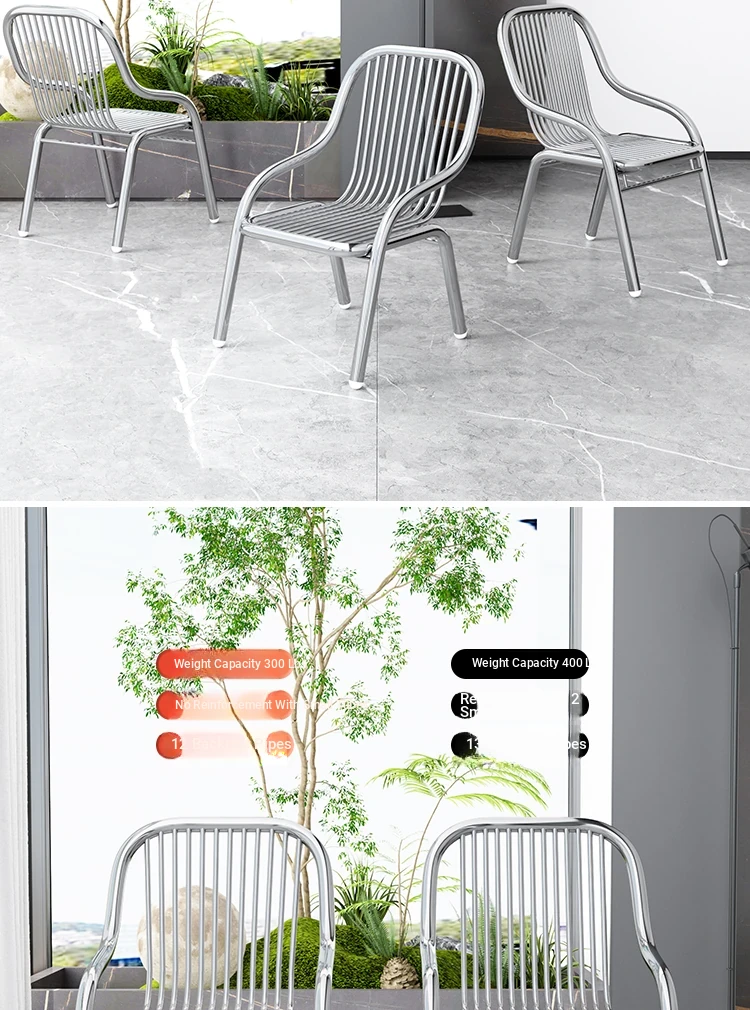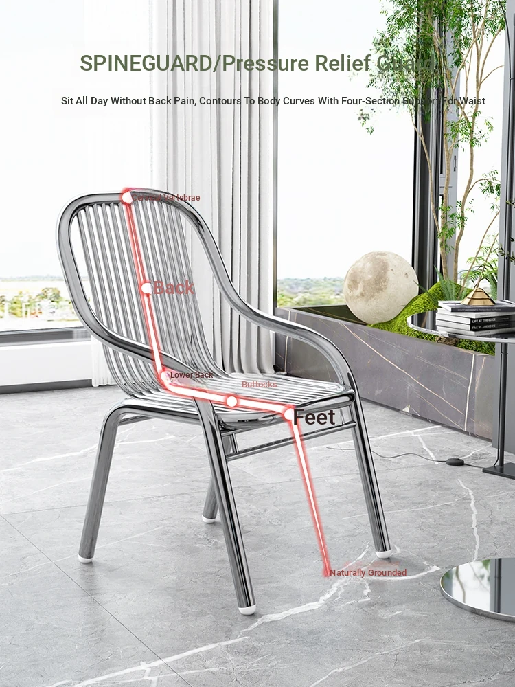 Modern Stainless Steel Outdoor Beach Chair - Single Reclining Lounge Chair for Home Use - Stylish and Minimalist Design - Comfortable Armchair for Relaxation and Dining