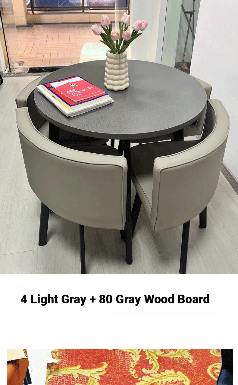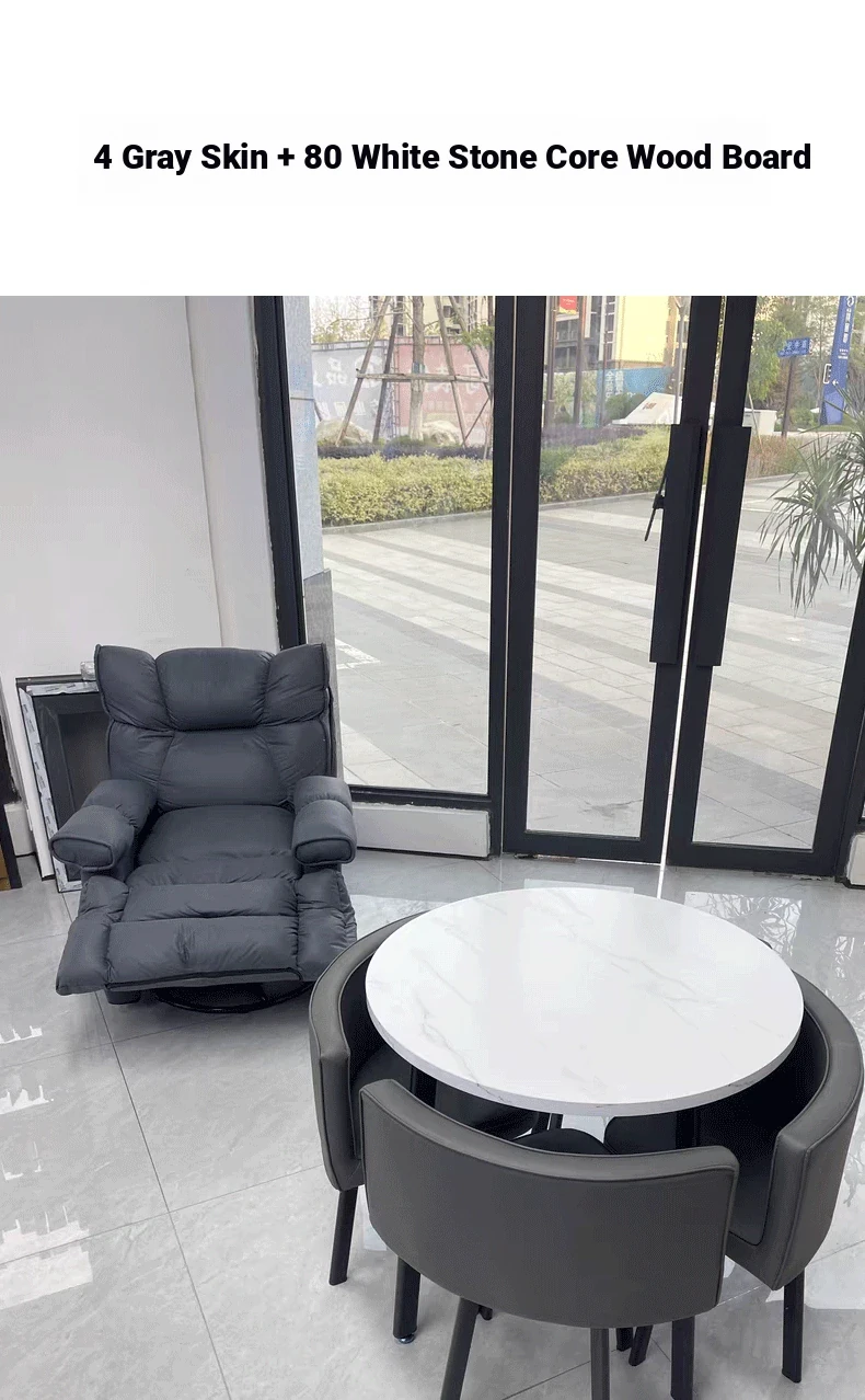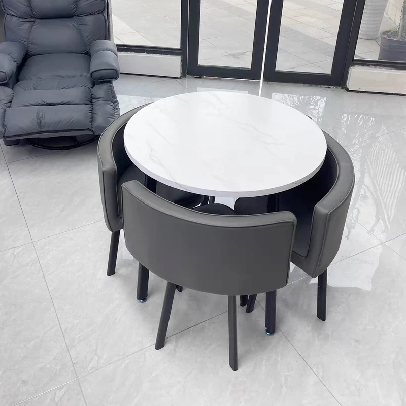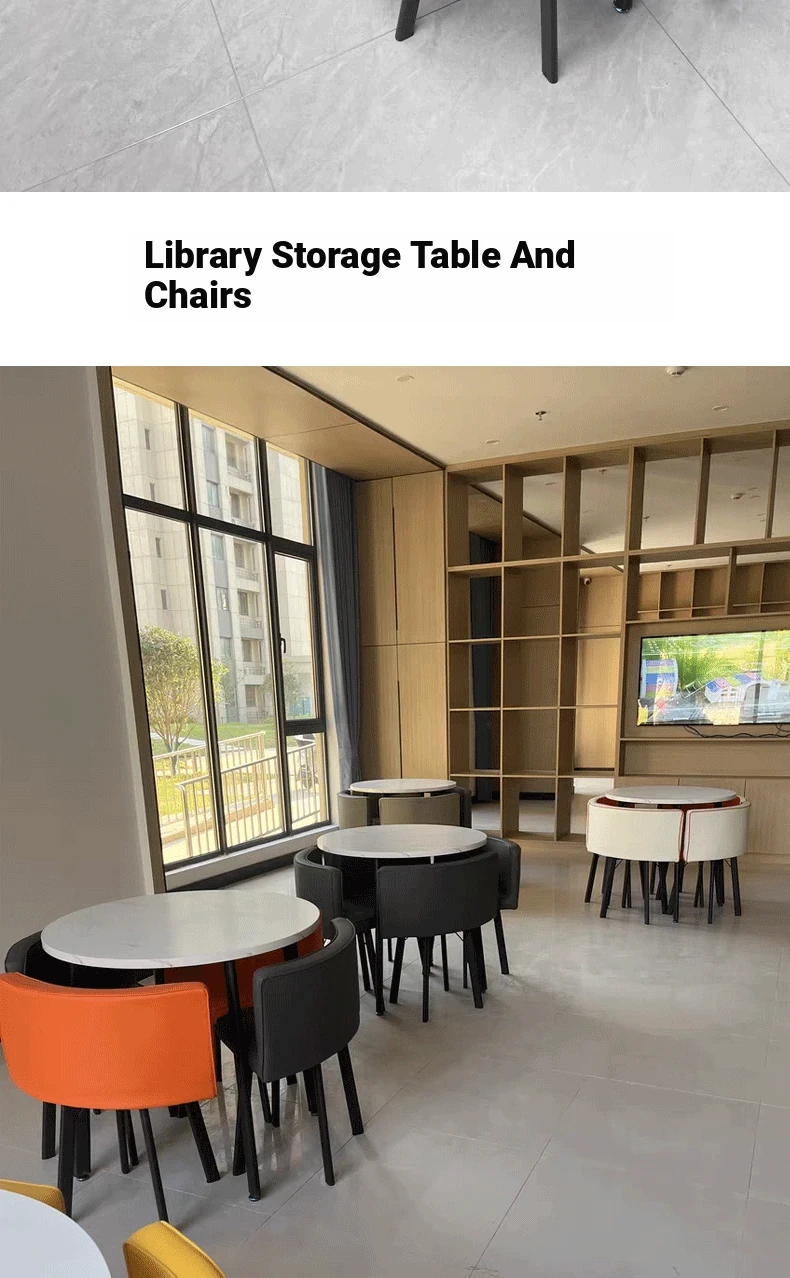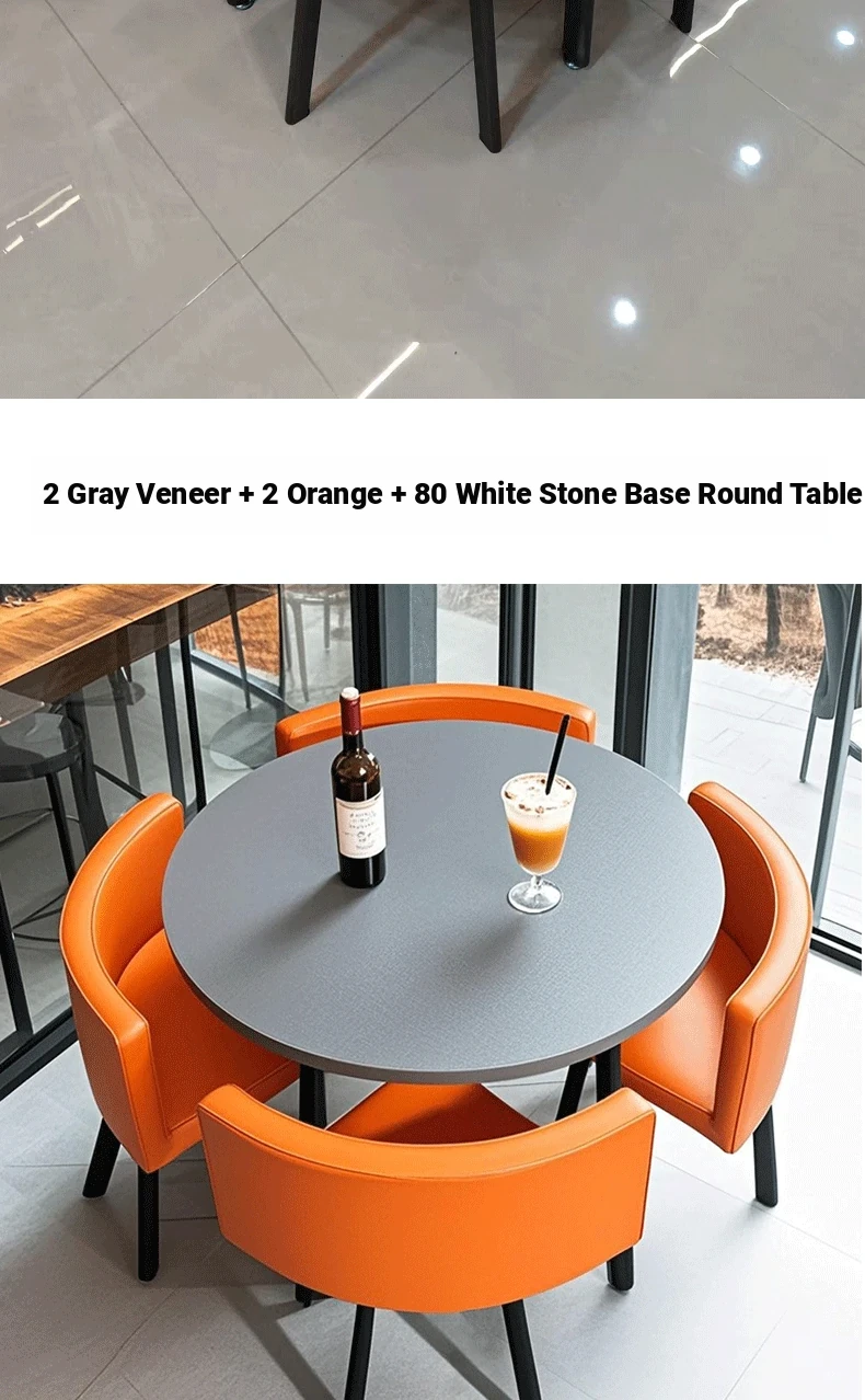 New 2023 Gray Round Reception Table for Libraries and Restaurants - Compact and Stylish Design with White Stone Base and Wooden Top, Perfect for Small Spaces