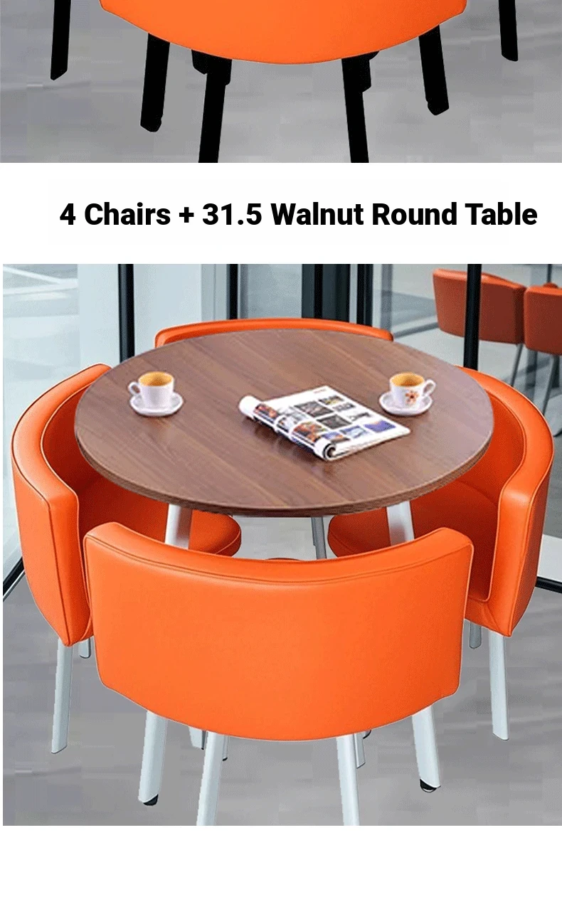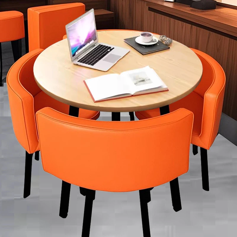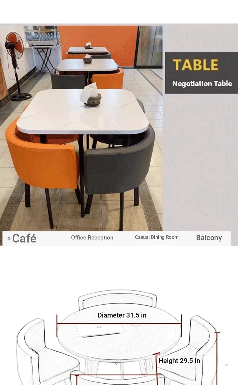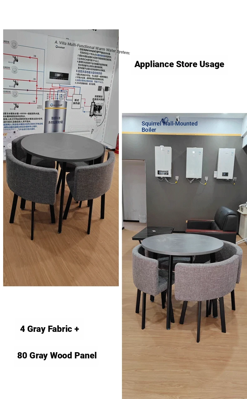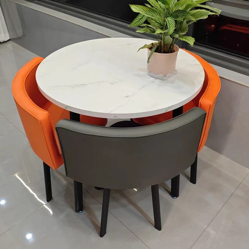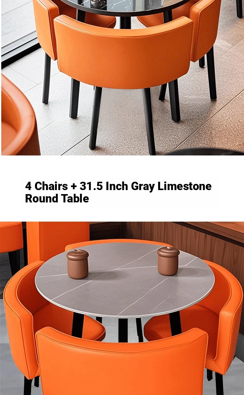 New 2023 Gray Round Reception Table for Libraries and Restaurants - Compact and Stylish Design with White Stone Base and Wooden Top, Perfect for Small Spaces